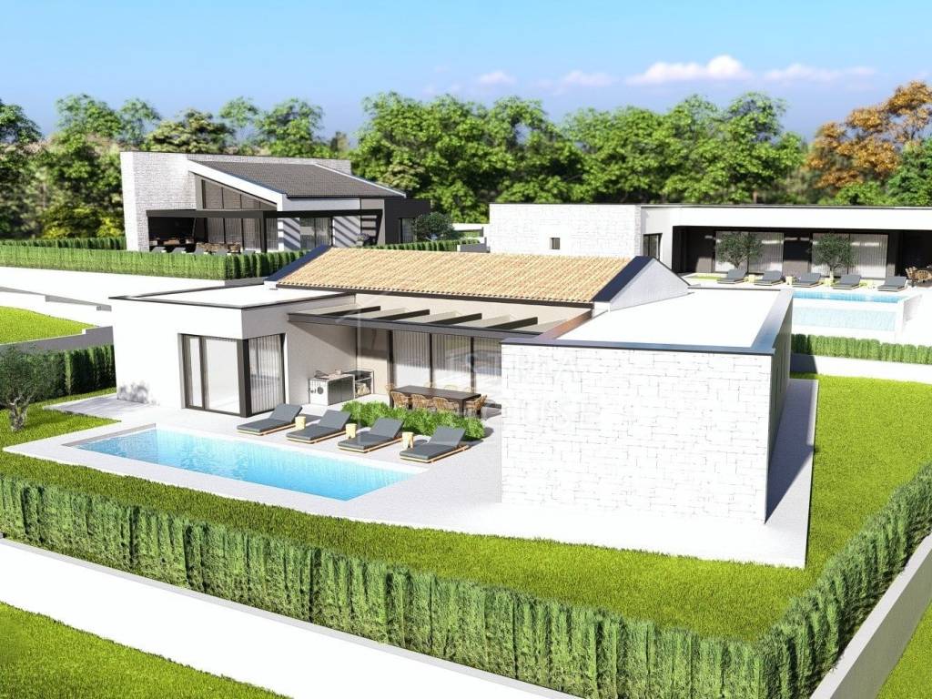 Prodaje se nova moderna vila u širokoj okolici Rovinja kod jednog tradicionalnog istarskog mjesta. Kuća je smještena na rubu izrazito mirnog naselja okružena prirodom i zelenilom. Kuća je savršen spoj modernih elemenata kao što su otvoreni prostor i velike staklene stijene te tradicionalnih elemenata poput kamenih zidova. Svi potrebni sadržaji se nalaze u blizni kuće, a Rovinj i more su udaljeni 25 km.