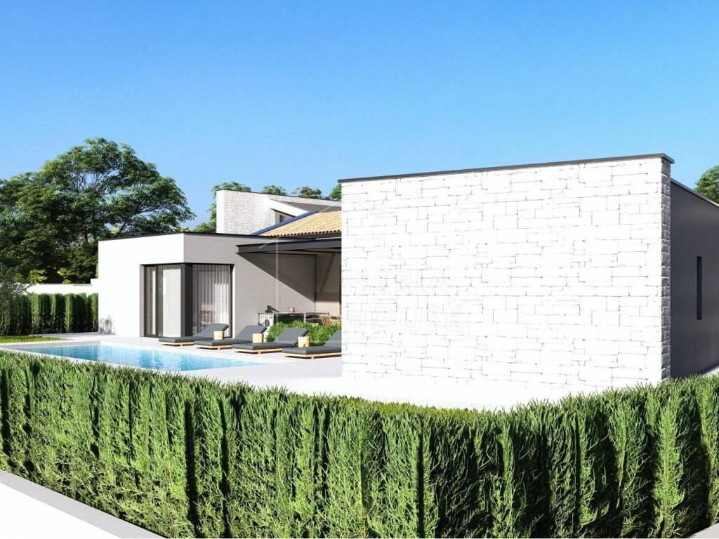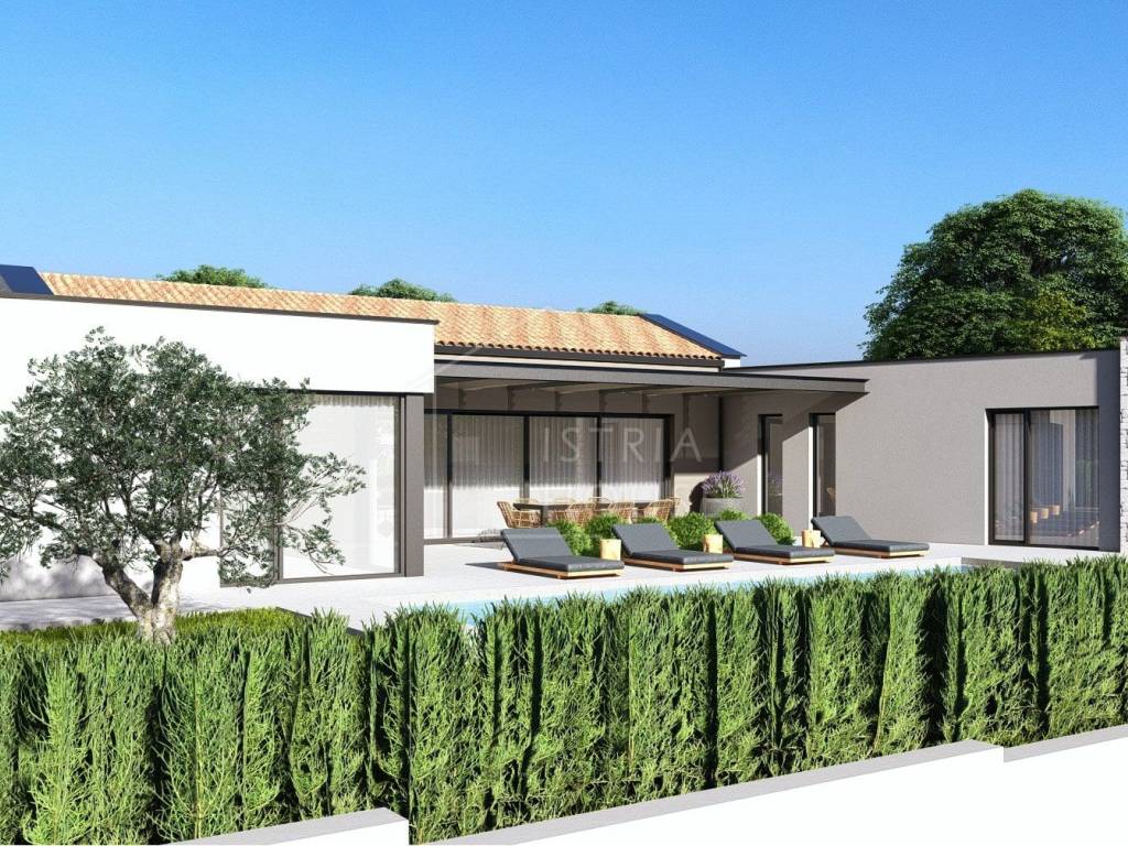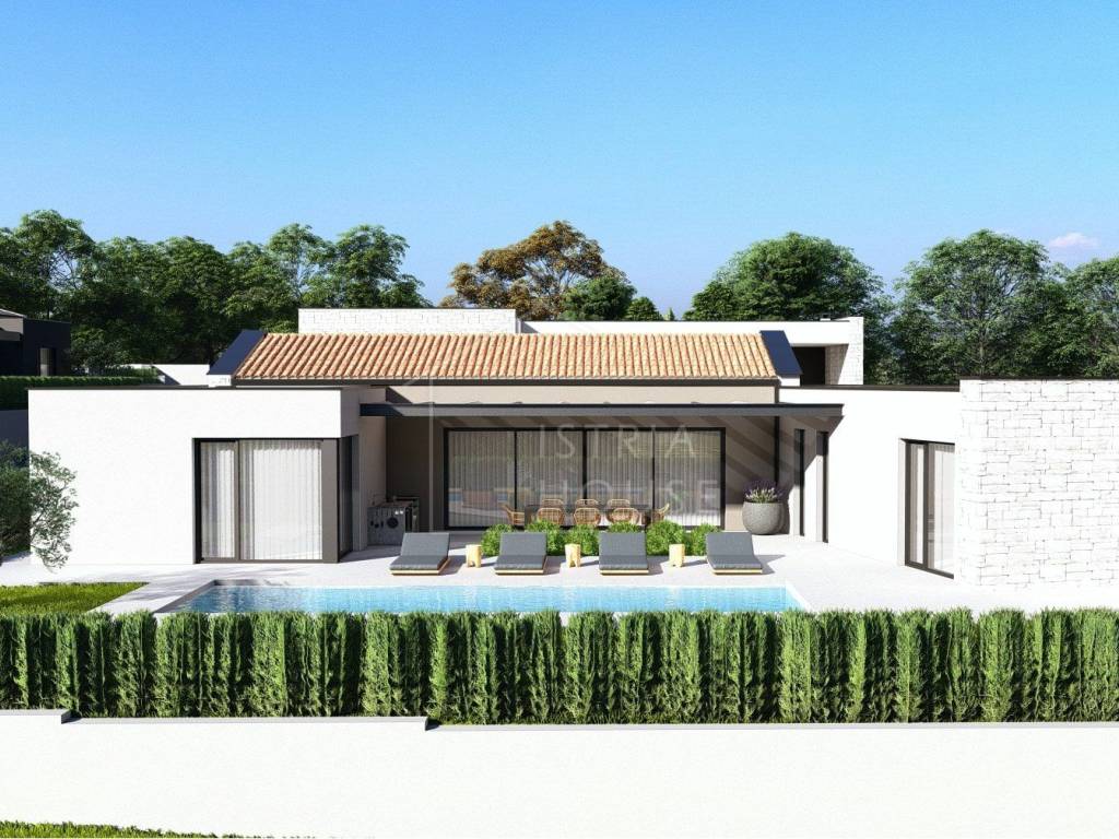 Prodaje se nova moderna vila u širokoj okolici Rovinja kod jednog tradicionalnog istarskog mjesta. Kuća je smještena na rubu izrazito mirnog naselja okružena prirodom i zelenilom. Kuća je savršen spoj modernih elemenata kao što su otvoreni prostor i velike staklene stijene te tradicionalnih elemenata poput kamenih zidova. Svi potrebni sadržaji se nalaze u blizni kuće, a Rovinj i more su udaljeni 25 km.