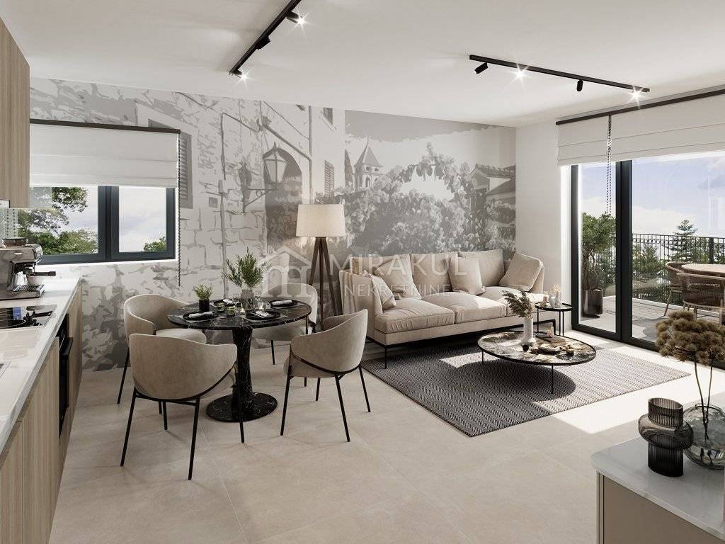 Sastoji se od: hodnika, kupaonice, dvije spavaće sobe, kuhinje, dnevnog boravka i blagovaonice, lođe.