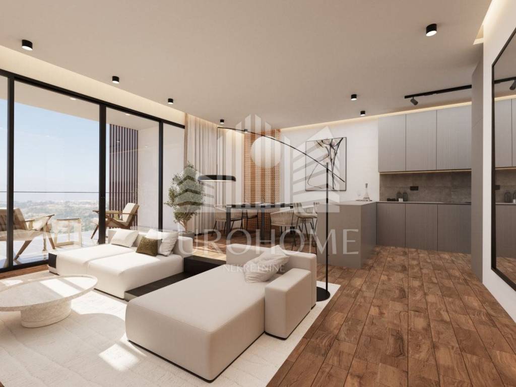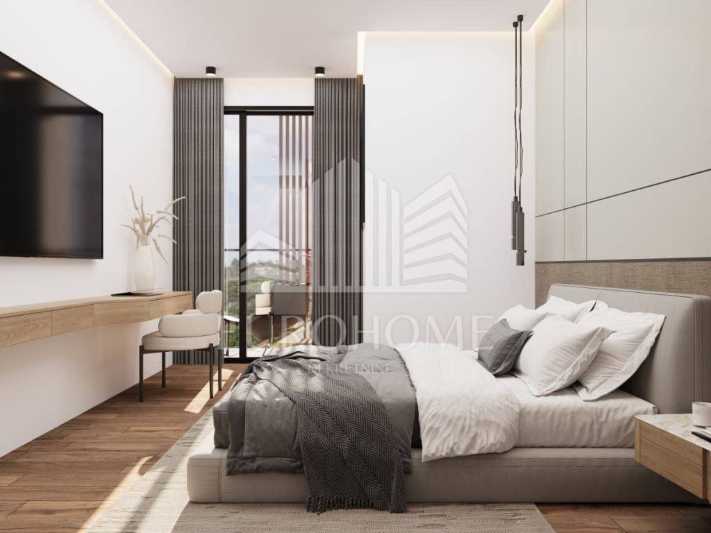 * Prizemlje (135,53 m2): terasa s jugozapadne strane s prostorom za sjedenje, sunčanje, bazen i roštilj; stan 1 uključuje stubište, predprostor, kupaonicu, dnevni boravak, blagovaonicu i kuhinju u konceptu otvorenog prostora te jednu radnu sobu