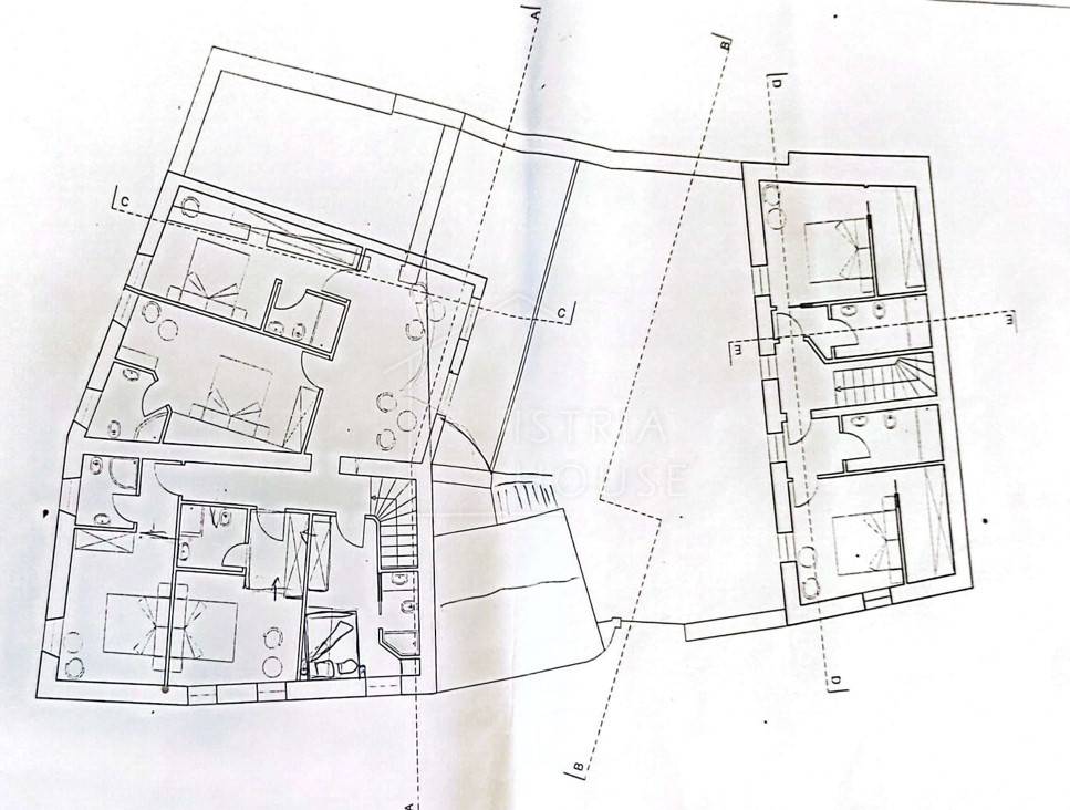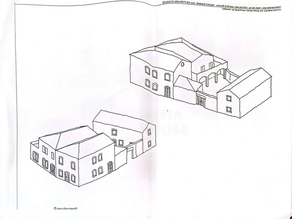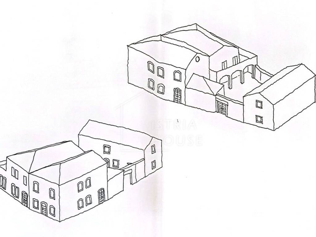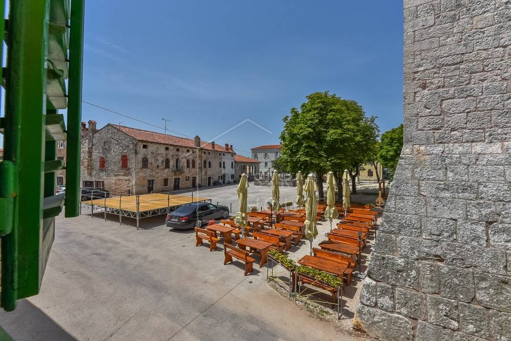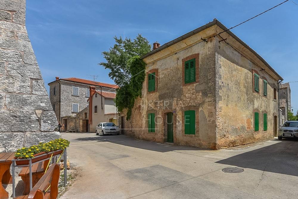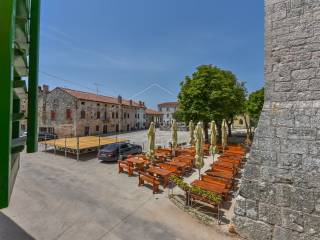 Na top lokaciji, s pogledom na srednjovjekovni trg i kaštel, prodaje se kuća s velikim dvorištem i potencijalom. Na parceli od 435 m2 smještene su 3 zgrade, od kojih je jedna djelomično uređena u istarskom stilu, fugirani kamen, sa drvenim gredama na stropu. Dok su druge dvije za kompletnu renovaciju. Sve tri dijele zajedničko zatvoreno dvorište .
