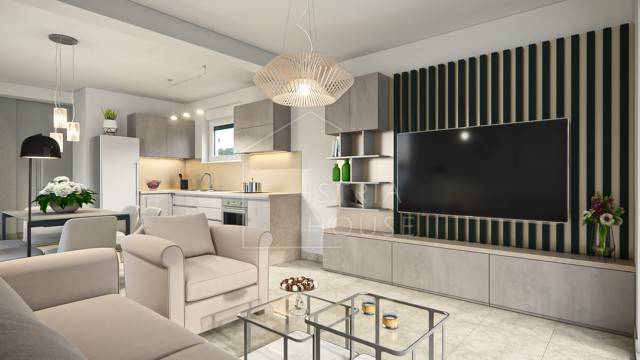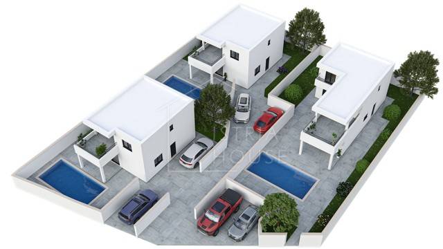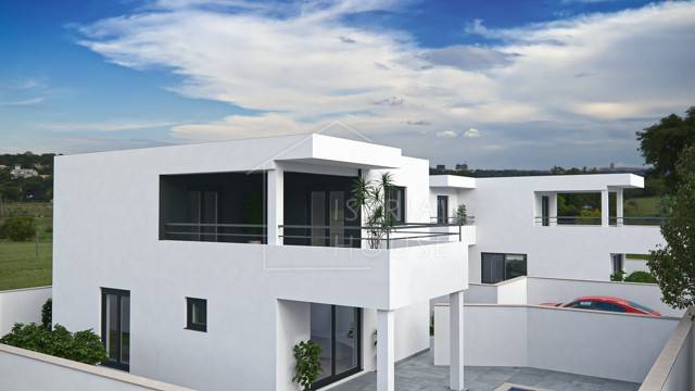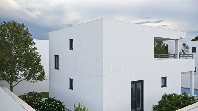 Nedaleko centra grada, u blizini svih potrebnih sadržaja prodaje se moderna kuća s bazenom u izgradnji brutto površine 125,76 m2. Vila je katnica s ravnim krovom te je njena netto korisna površina 114,18 m2.