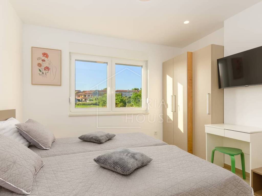 U neposrednoj blizini Svetvinčenta, u mirnoj prirodnoj sredini prodaje se moderna prizemnica s bazenom bruto površine 169 m2 smještena na parceli od 897 m2.
