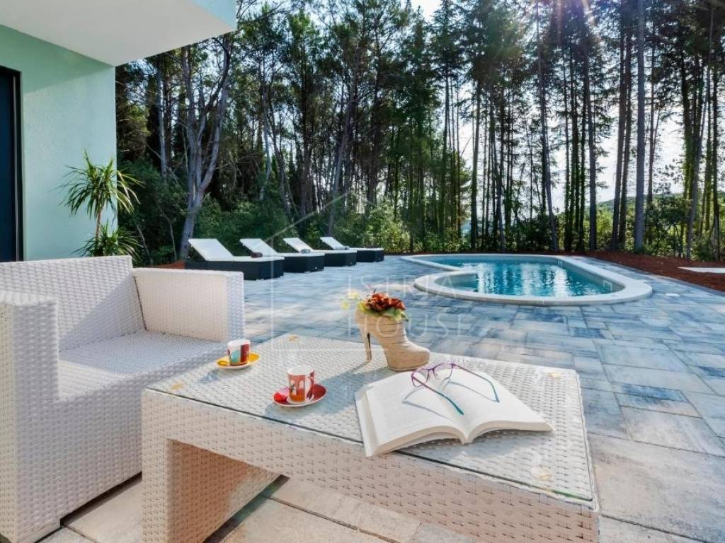 Vanjskim dijelom dominira bazen koji nije grijani ali ima napravljenu pripremu za uključivanje grijanja , tu je i natkrivena terasa za ugodna ljetna druženja.