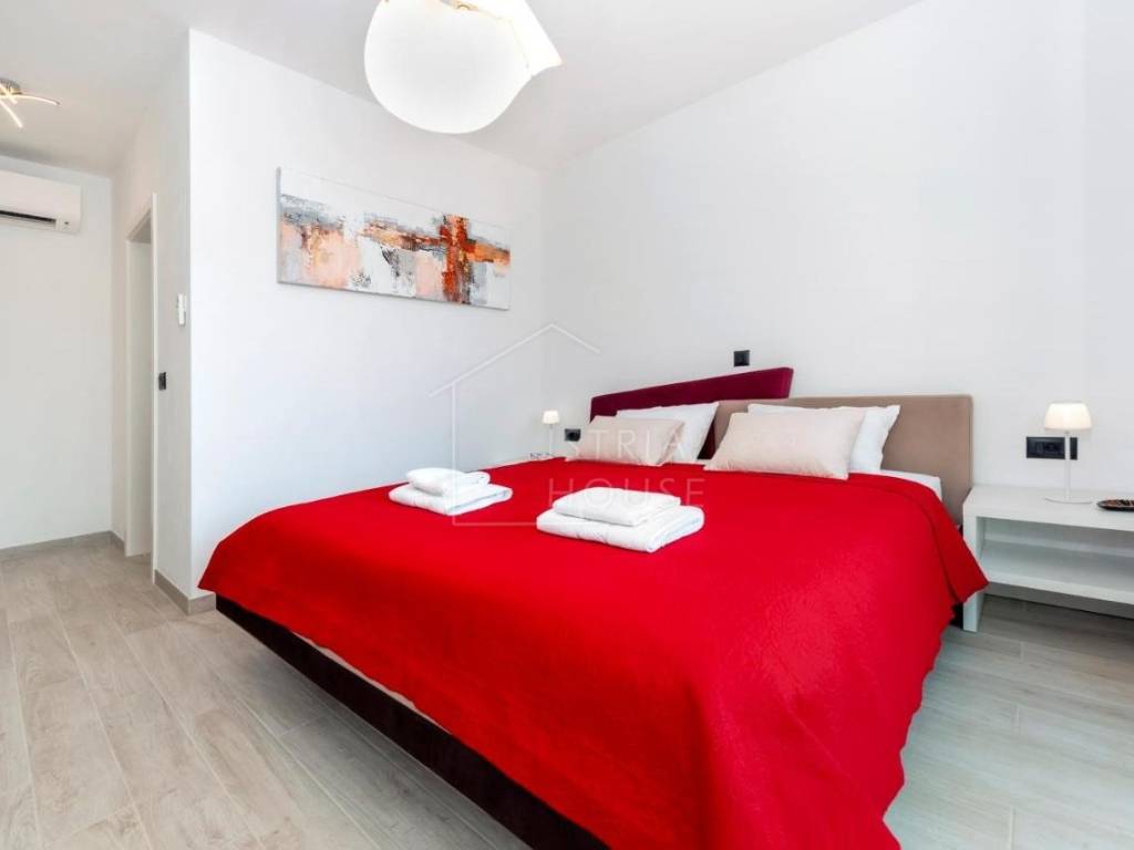 Nedaleko centra grada, u mirnom i razvijenom predjelu prodaje se moderna montažna kuća koja se nalazi na svega 600 metara udaljenosti od plaže i mora.