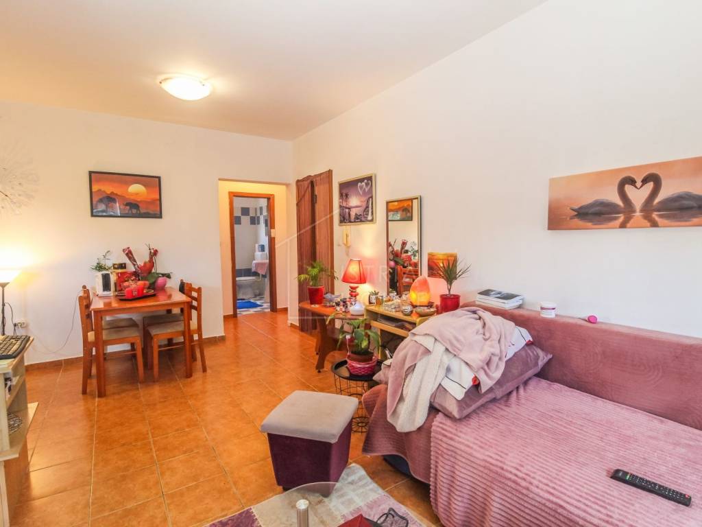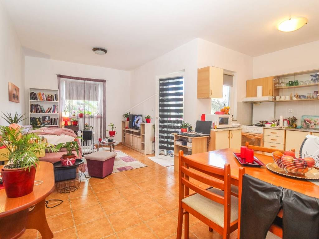 Prodaje se odličan stan u prizemlju stambene zgrade s velikim dvorištem u vlasništu u blizini mora. Stan se sastoji od dnevnog boravka s kuhinjom, dvije spavaće sobe od kojih jedna ima svoj vlastiti balkon, kupatilo te hodnik. Iz dnevnog boravka se izlazi na drugu terasu te na veliko dvorište. Stan se grije klima uređajem te je orijentiran na zapad. Dvorište i parkirno mjesto su u vlasništvu stana te upisani u vlasnički list. u neposrednoj blizini nalaze se svi potrebni sadržaji za život kao i odličan odmor.