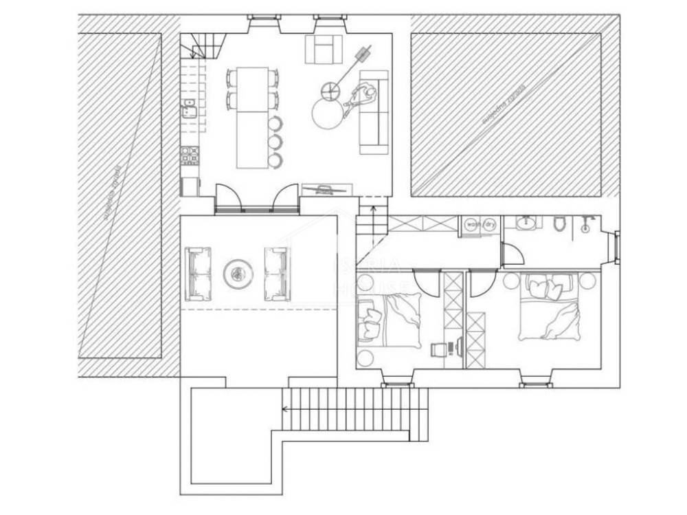 U prizemlju se nalaze 2 konobe idealne za druženja i za stvaranje welness zone, dok se ostatak prostorija smjestio na kat i potkrovlje.