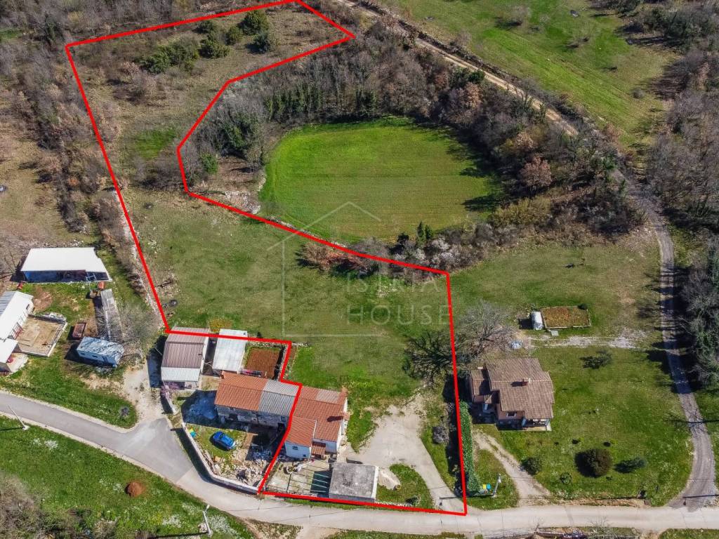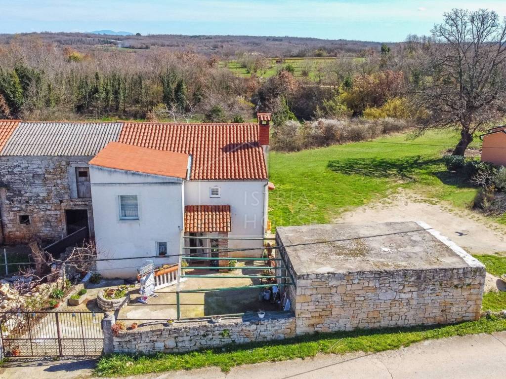 Prodaje se renovirana kamena kuća u malenom istarskom selu s velikom okućnicom. Kuća je dvojna i nalazi se u mirnom mjestu okružena prirodom. Kuća ima ukupno 200m2 od čega glavni objekt ima 160m2 koji se proteže na prizemlje i kat te pomoćni objekt od 40 m2. U prizemlju se nalazi dnevni boravak s kuhinjom, kupatilo te ostava, dok na katu se nalaze tri spavaće sobe. Kuća je kompletno renovirana 2016. godine. Od ukupnog dvorišta 900m2 je građevinsko zemljište, a ostatak poljoprivredno zemljište. Svi najbliži sadržaji se nalaze na 10 minuta vožnje autom.