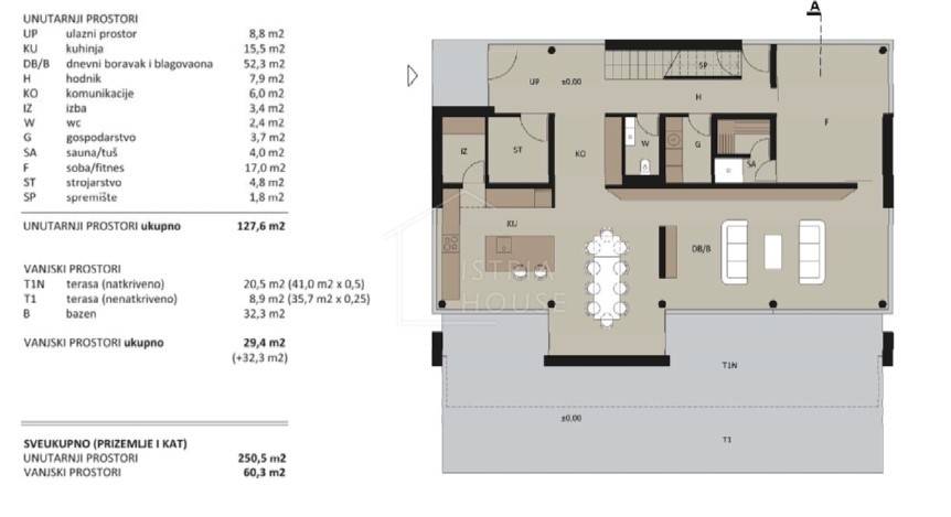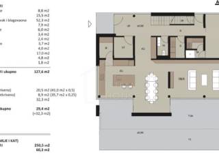 Projektom je planirana moderna građevina od 250 m2 sa 4 spavaće sobe iz kojih bi se pružao pogled na more.