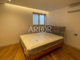 Opatija, prodaje se novi luksuzni stan u prizemlju novogradnje s liftom. Izuzetno dobra lokacija, samo 150 m udaljena od mora i plaže, te nekoliko minuta vožnje autom do centra grada Opatije i svih urbanih sadržaja. Prodaje se stan ukupne površine 168 m2 koji se sastoji od ulaznog hodnika, prostranog open space dnevnog boravka sa kuhinjom i blagovaonom, koji imaju direktan izlaz na prostranu terasu, na kojoj je mogućnost postavljanja jacuzzija. Stan ima tri spavaće sobe, od kojih je jedna master sa vlastitom garderobom i pripadajućom kupaonom, jednom zasebnom kupaonicom i vešerajem. Kvalitetni parket je na podu, aluminijska stolarija visoke kvalitete, električni podizači roleta, vrhunska keramika i sanitarije, dizalice topline... Stanu pripadaju jedno parkirno mjesto u garaži i jedno vanjsko. Stan ima dva ulaza, od kojih je jedan topli ulaz iz garaže, drugi direktno sa stubišta. Grijanje i hlađenje osigurava se putem fan coilera, dizalice topline renomiranog proizvođača, te električnim podnim grijanjem. Elegantno stubište osvjetljeno je ambijentalnom rasvjetom na senzor.