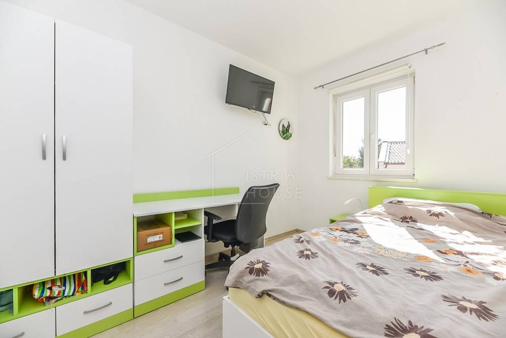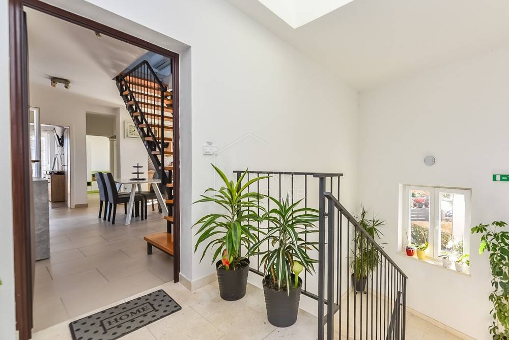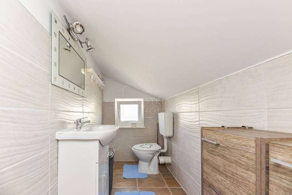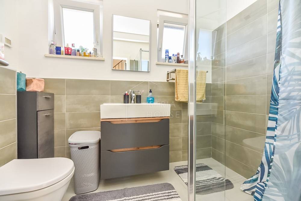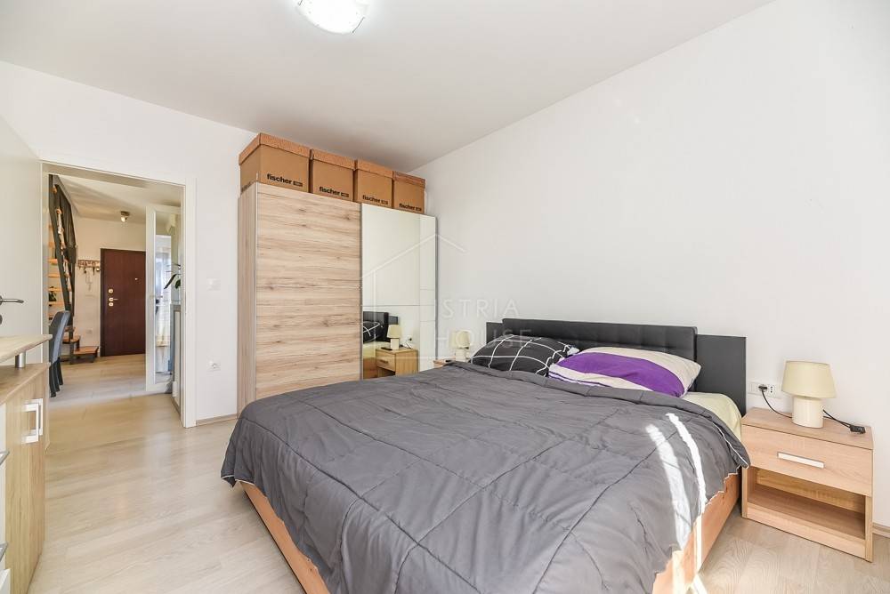 U donjoj etaži nalazi se prostrani open-space dnevni boravak s blagovaonicom i moderno opremljenom kuhinjom, dvije spavaće sobe te kupaonica. Na gornjoj etaži smještena je treća spavaća soba i još jedna kupaonica, što ovaj stan čini savršenim za obitelj ili kao investiciju za turistički najam.