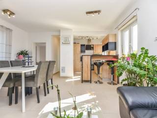 Na prodaju je moderan, potpuno namješten dvoetažni stan koji se nalazi na prvom katu novije stambene zgrade u mirnom i uređenom naselju. Stan ukupne površine od 88m² odiše svjetlošću, funkcionalnošću i suvremenim dizajnom.