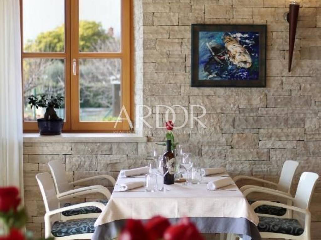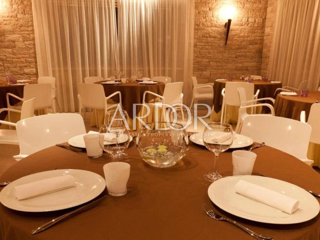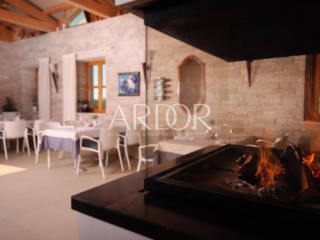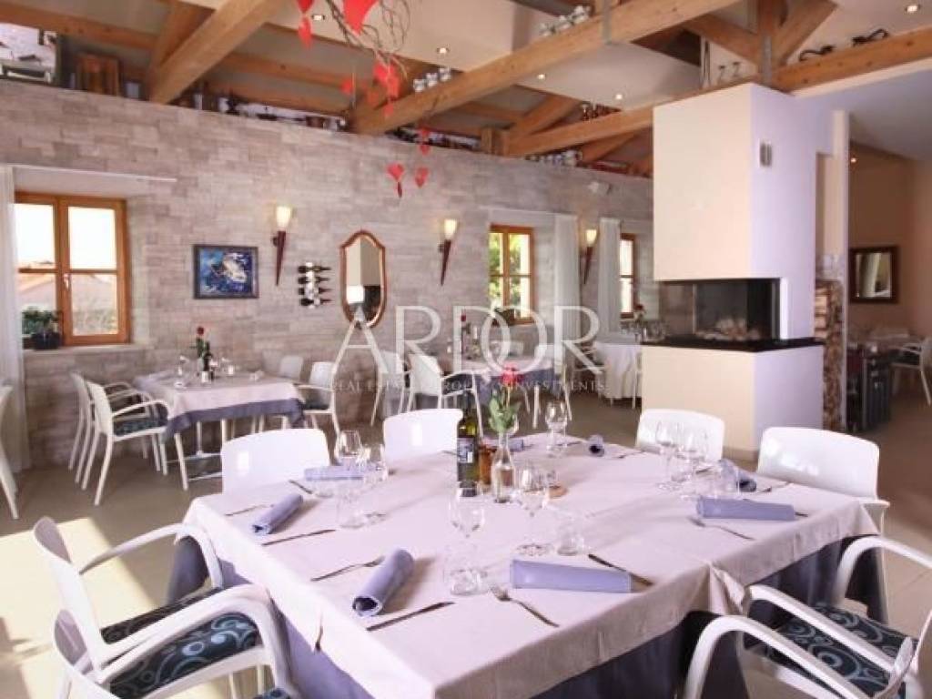 Prekrasno uređen restoran se proteže unutarnjim dijelom te prostranom terasom, te u nastavku ima kompletno opremljenu kuhinju svim potrebnim uređajima.. Dvorana za sastanke ima kapacitet za 60 osoba, u potpunosti je opremljena, osvijetljena prirodnim svijetlom te ima pogled na bazen. Prostor za wellness je površine 87 m2 i još nije završen, te ga budući vlasnik može opremiti i urediti po svojoj želji.
