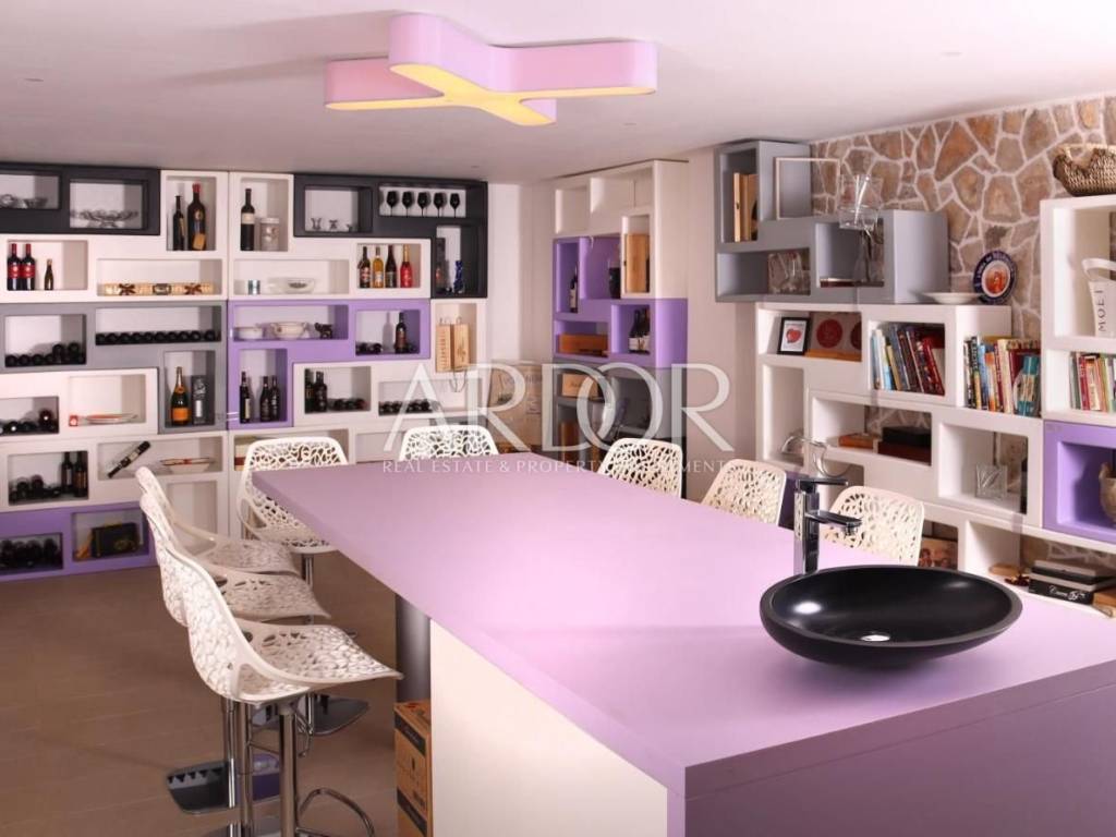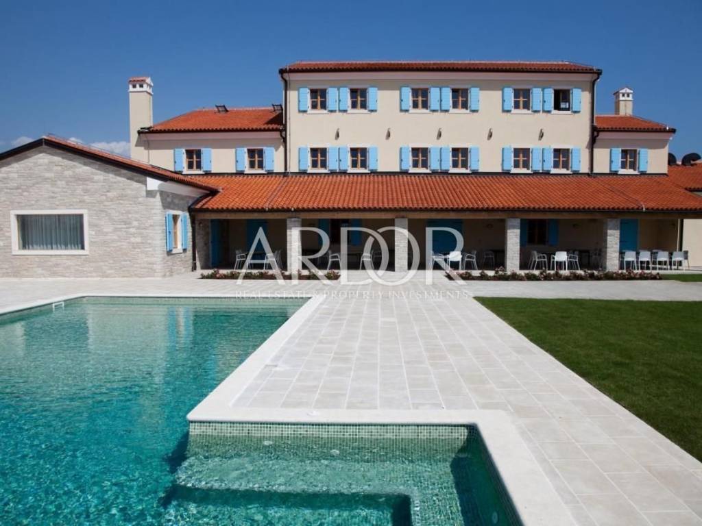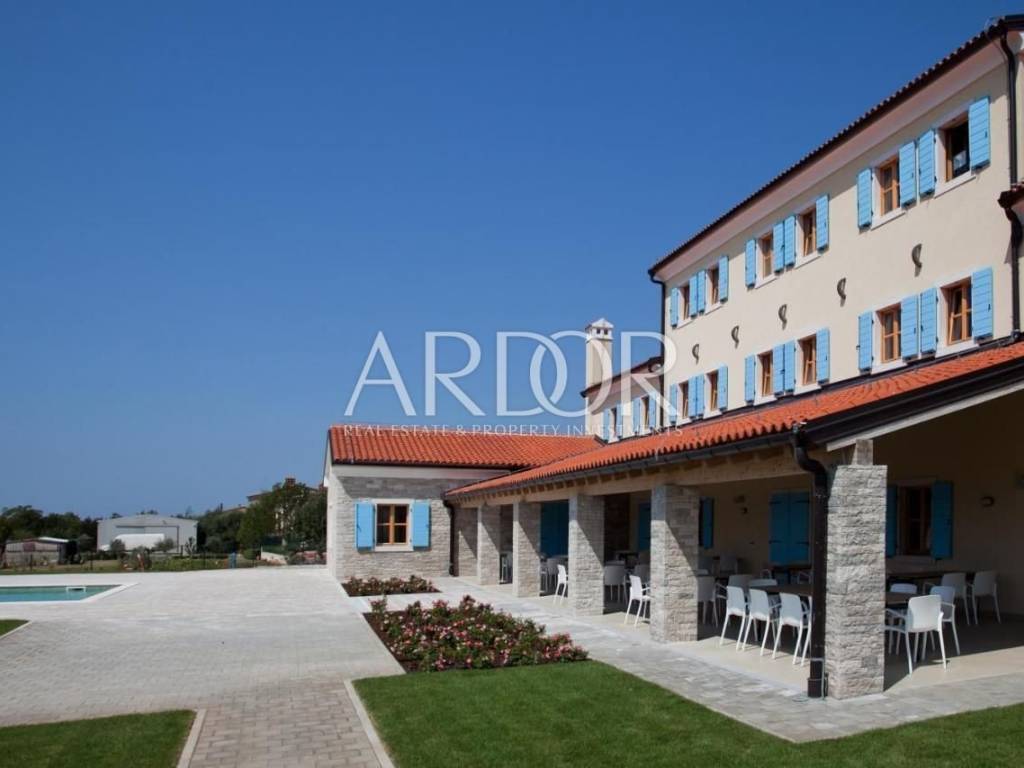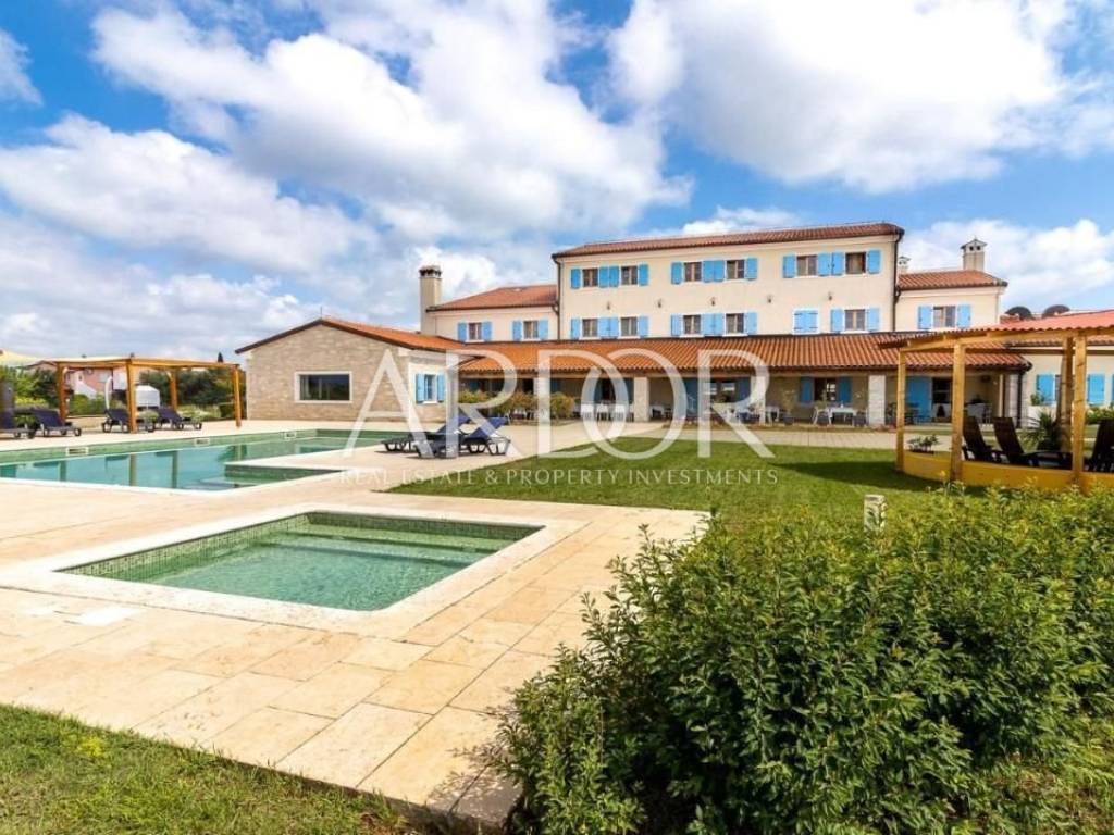 Prekrasno uređen restoran se proteže unutarnjim dijelom te prostranom terasom, te u nastavku ima kompletno opremljenu kuhinju svim potrebnim uređajima.. Dvorana za sastanke ima kapacitet za 60 osoba, u potpunosti je opremljena, osvijetljena prirodnim svijetlom te ima pogled na bazen. Prostor za wellness je površine 87 m2 i još nije završen, te ga budući vlasnik može opremiti i urediti po svojoj želji.