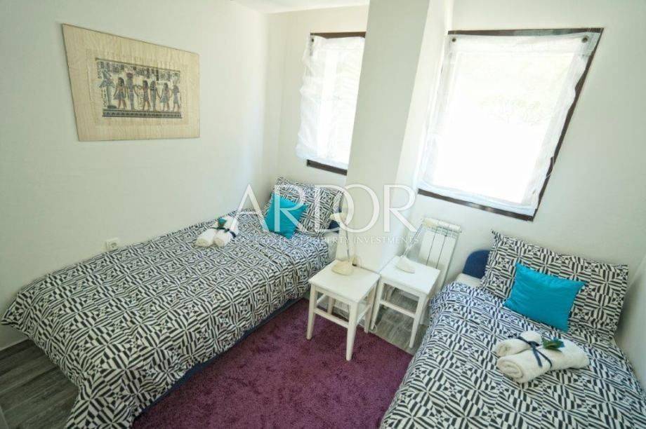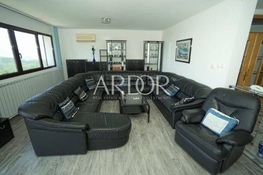 Kuća, okućnica, vrt i voćnjak se nalaze na parceli od 1.433 m², te pruža prekrasan pogled na zelenu okolicu, more i planine.