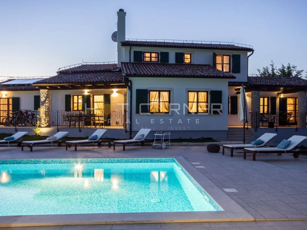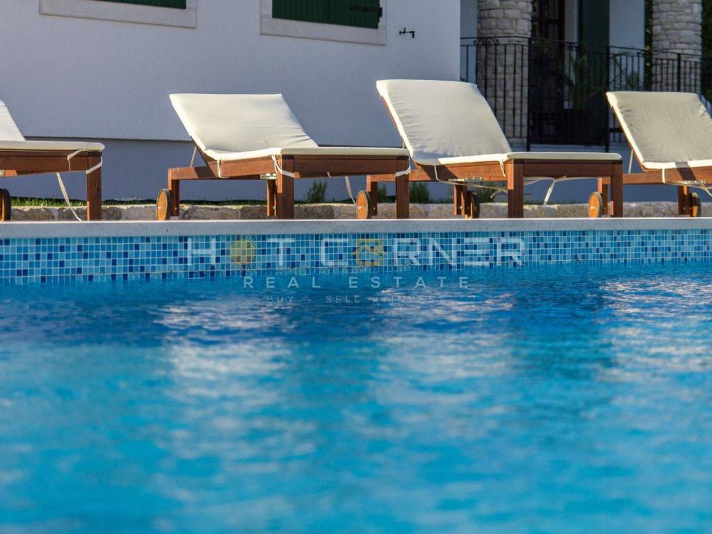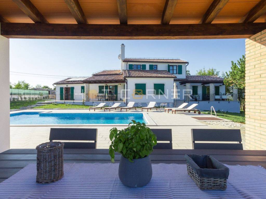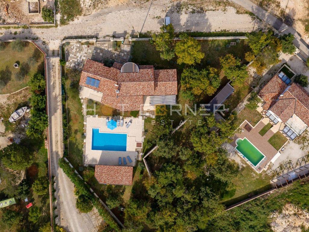 Na samo 3 km od mora, u mirnom selu, sa pogledom na okolna brda, smjestila ova prekrasna samostojeća villa koja se proteže na 1905m2 okućnice. Osmišljena u romantičnom retro rustikalnom stilu, sa puno svjetlosti, prostranim ineterijerima i raskošno velikom okućnicom.