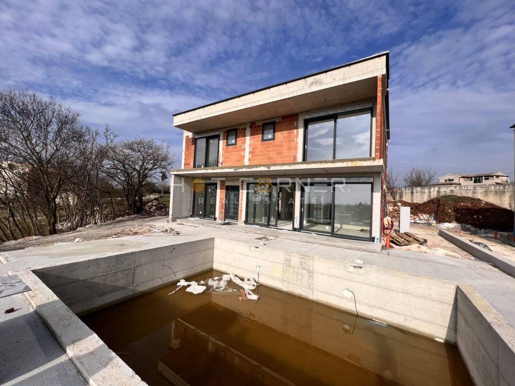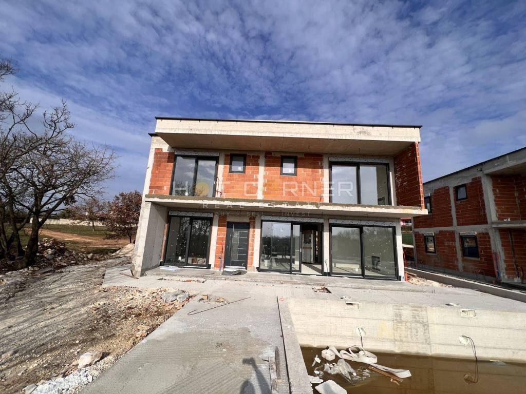 Grijanje odnosno hlađenje je predviđeno na dizalicu topline ( podno grijanje kroz cijelu kuću ). ALU stolarija. Komarnici. Pločice prve klase. Parkirna mjesta za nekoliko automobila. Iza kuće planirana zelena površina sa igralištem za djecu.