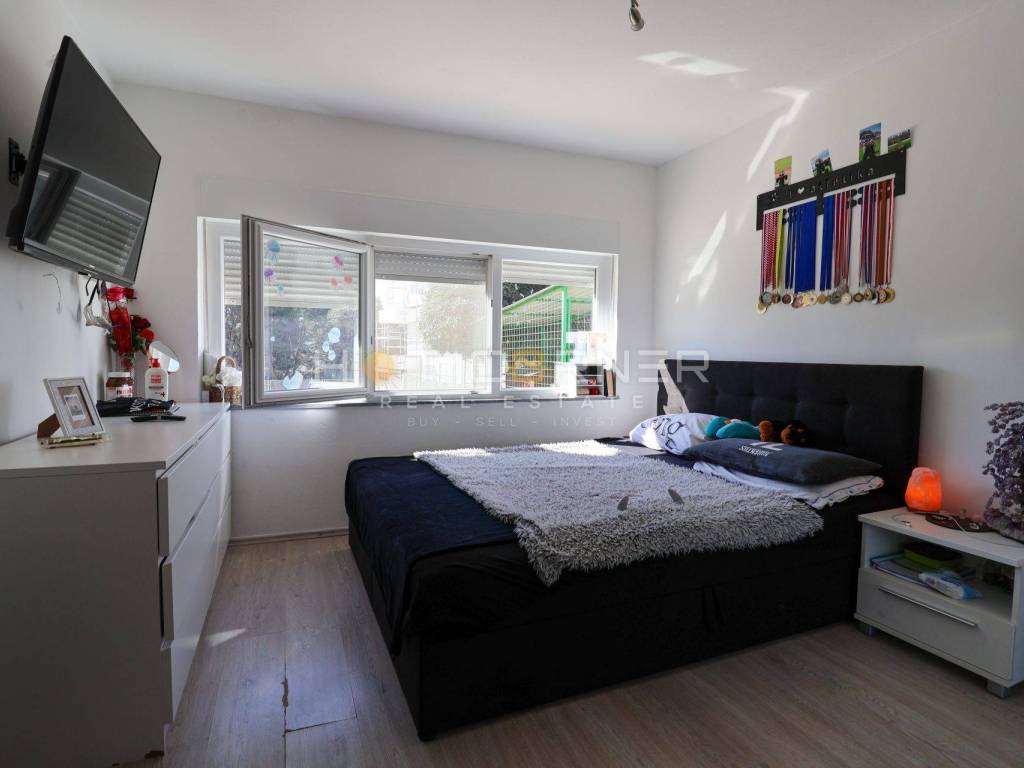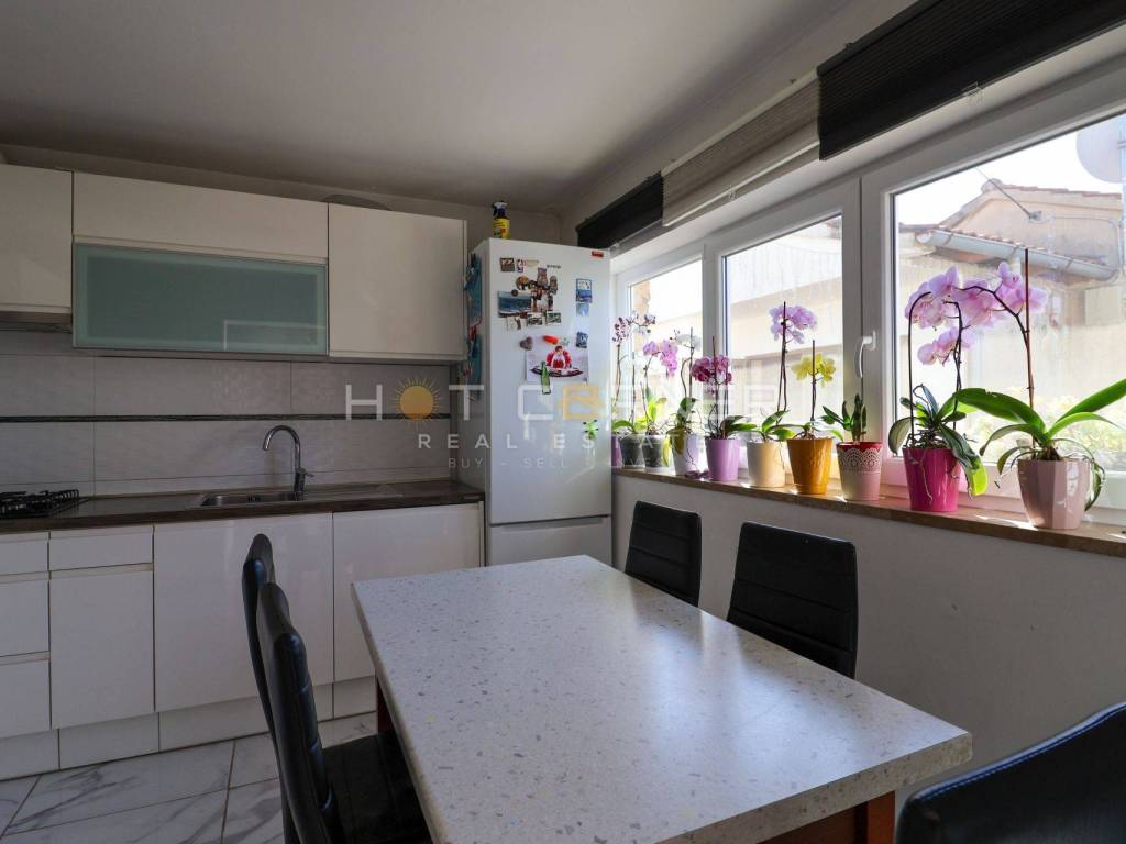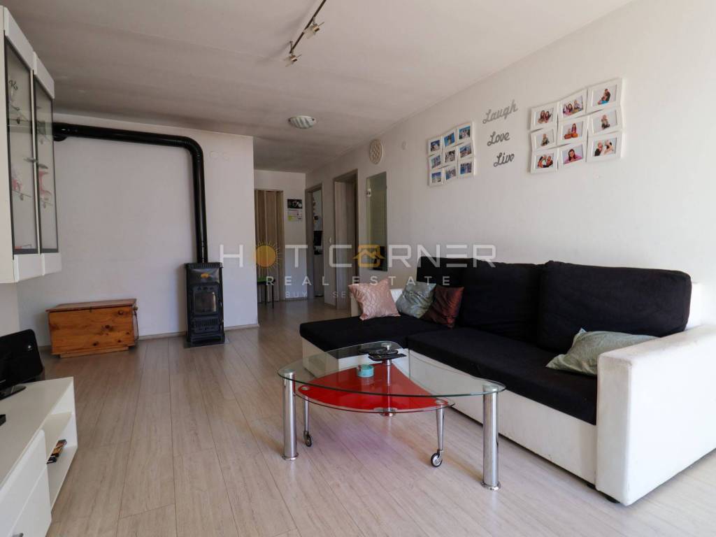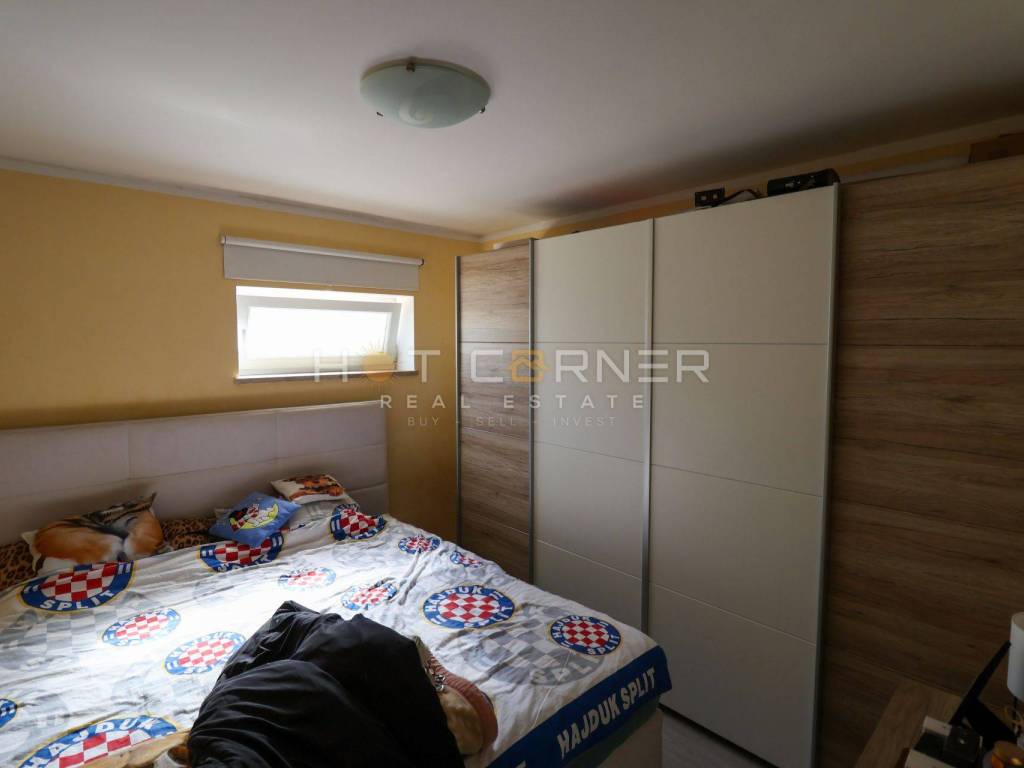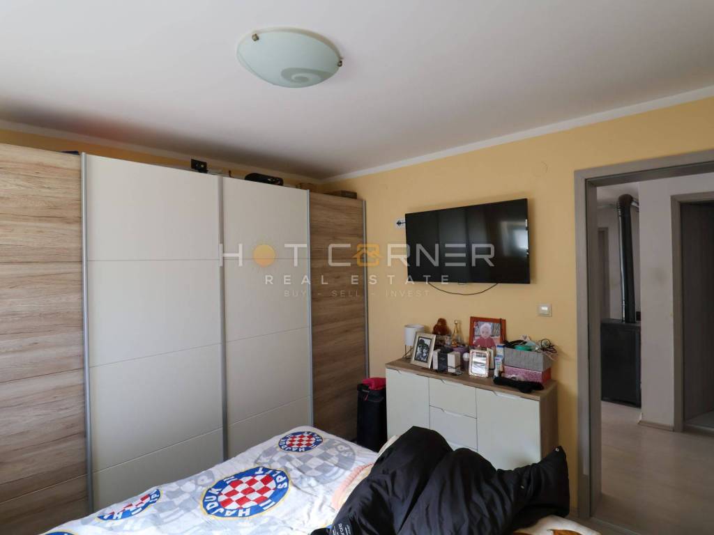 U ponudi prekrasan obiteljski stan površine 95m2 sa samostojećom kućom oko površine 60 m². Stan se sastoji od 4 spavaće sobe, dvije kupaonice, ostave, odvojene kuhinje sa blagovaonom, dnevnog boravka sa izlazom na prostranu terasu spojenu sa okućnicom jugo zapadne orijentacije iza koje se nalazi veliki travnjak. Stan je opremljen sa kvalitetnom PVC stolarijom, 2 inverterska klima uređaja, peć na drva, parlafon sa video nadzorom, električno otvaranje ulaznih vrata za pješake i automobile, te se prodaje u potpunosti namješten. Osim velike i prostrane okućnice površine 530 m² i obiteljskog stana, prodaje se i zasebna prizemna kuća površine oko 60 m² sa velikom nadstrešnicom/terasom, koja sastoji od kuhinje sa dnevnim prostorom, kupaonice i prostrane ostave za skladištenje stvari koja se može organizirati kao spavaća soba.