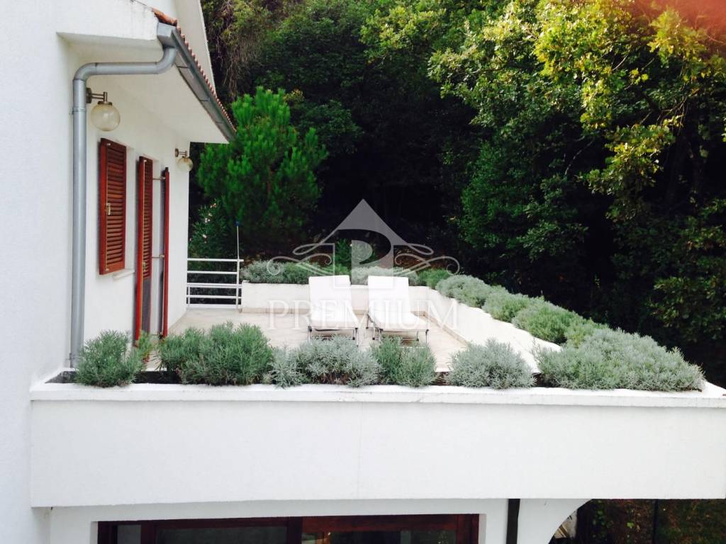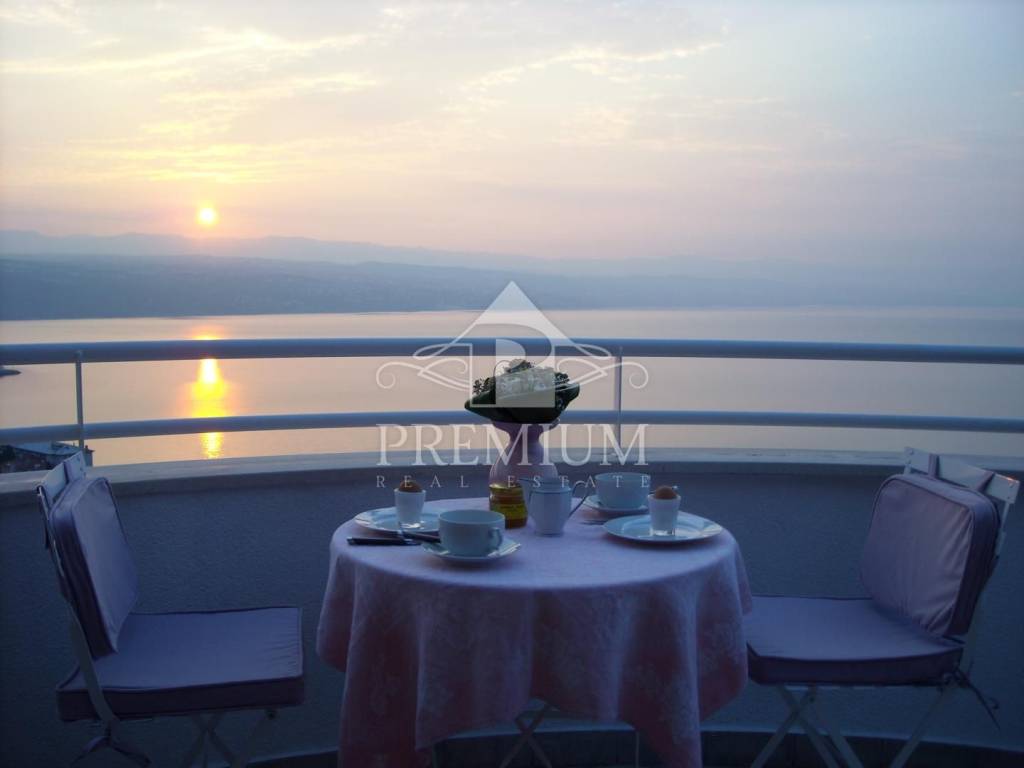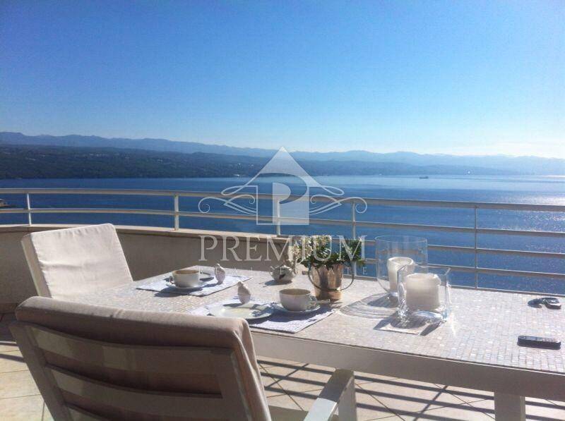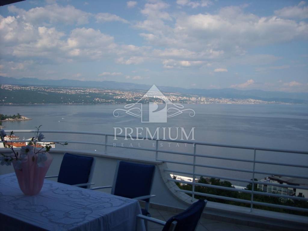 U prodaji imamo dvoetažan stan u kući s tri stambene jedinice na jedinstvenoj lokaciji u Opatiji sa fantastičnim pogledom na čitav Kvarner, udaljenoj 280 metara od mora. Stan se nalazi na 2. katu i visokom potkrovlju, a ima 281,14 m2 uređenog stambenog prostora i cca 110 m2 terasa sa veličanstvenim pogledom na čitavi Kvarner. Stan na 2.katu se sastoji od hodnika, dnevnog boravka, kuhinje i blagovaone, dvije spavaće sobe, kupaone i terase, dok se na katu nalaze dvije spavaće sobe, kupaona, te terase sa panoramskim pogledom. Stanu pripada jedno natkriveno parkirno mjesto, a okućnica je zajednička. Sveukupna površina 306,95 m2 etažnog vlasništva.