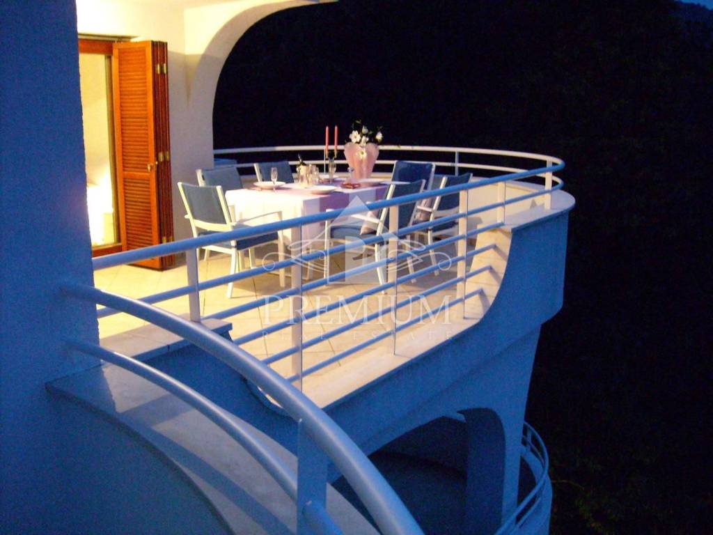 Kuća ima prekrasan otvoren pogled na cijeli Kvarner, velike terase, garažu te mogućnost izgradnje bazena i dodatne 2 garaže, a nalazi se na mirnoj lokaciji.