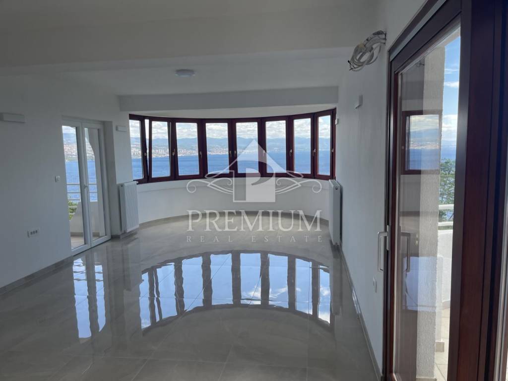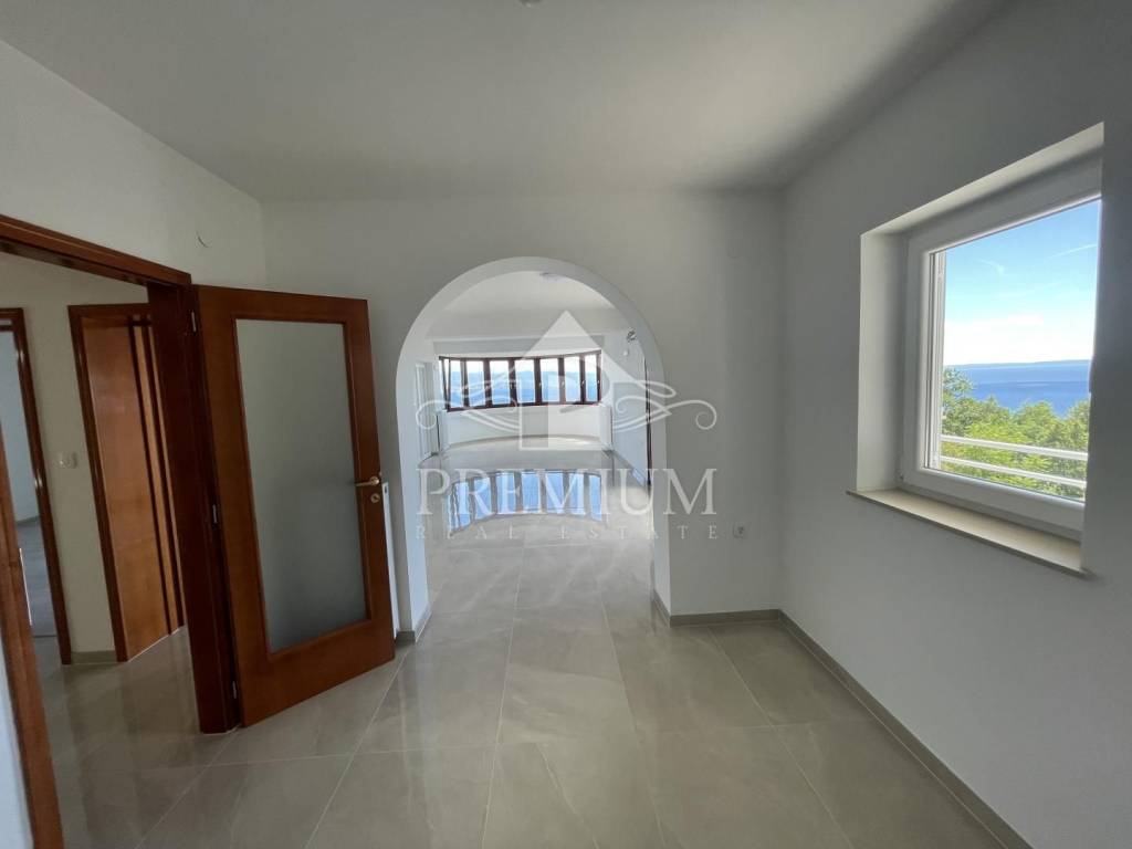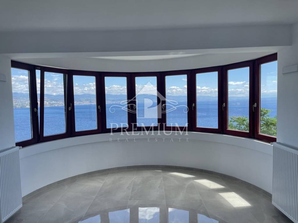 Kuća ima prekrasan otvoren pogled na cijeli Kvarner, velike terase, garažu te mogućnost izgradnje bazena i dodatne 2 garaže, a nalazi se na mirnoj lokaciji.