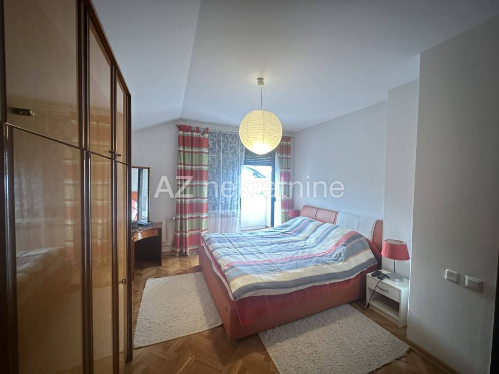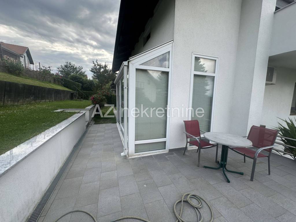 Sastoji se u prizemlju od ulaznog hodnika, kotlovnice, vešeraja i spremišta. Na prvom katu se nalazi spavaća soba, kupaonica, kuhinja, dnevni boravak s blagovaonicom iz kojih se izlazi u zimski vrt, terasu i vrt, dok se na drugom katu nalaze tri spavaće sobe (iz svake spavaće sobe izlazi se na balkon) i kupaonica. Oko kuće se nalazi uređeni vrt, a ispred kuće 4 parkirna mjesta.