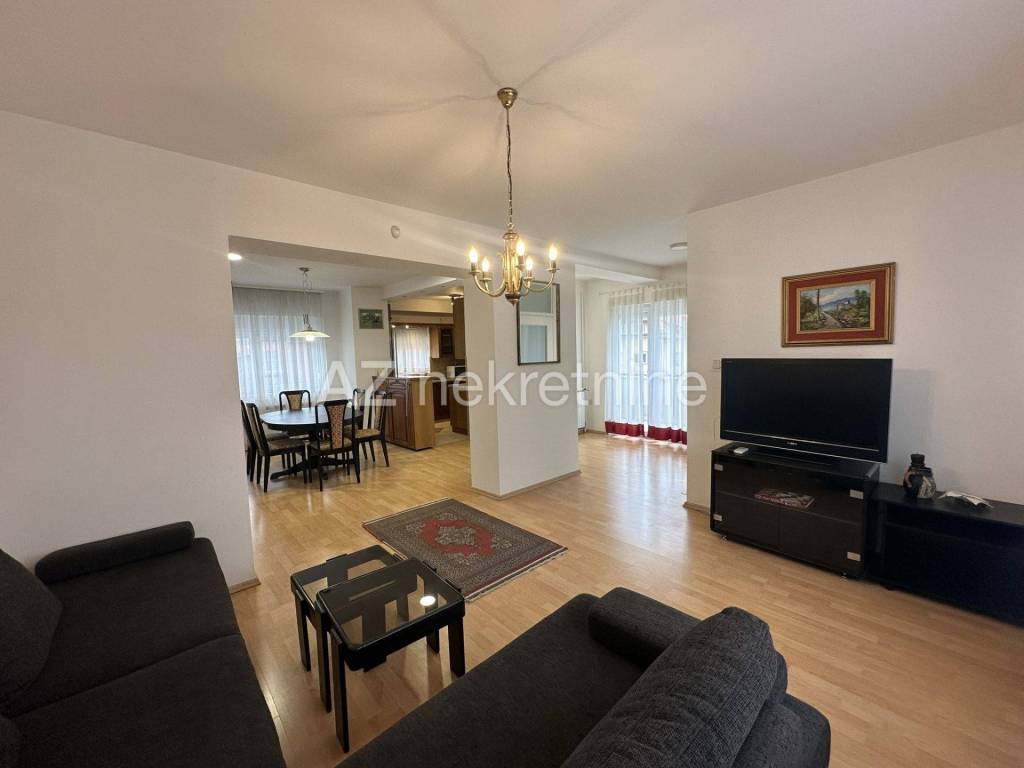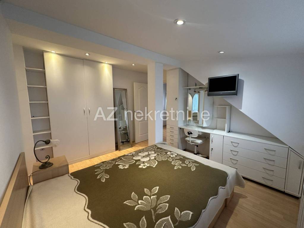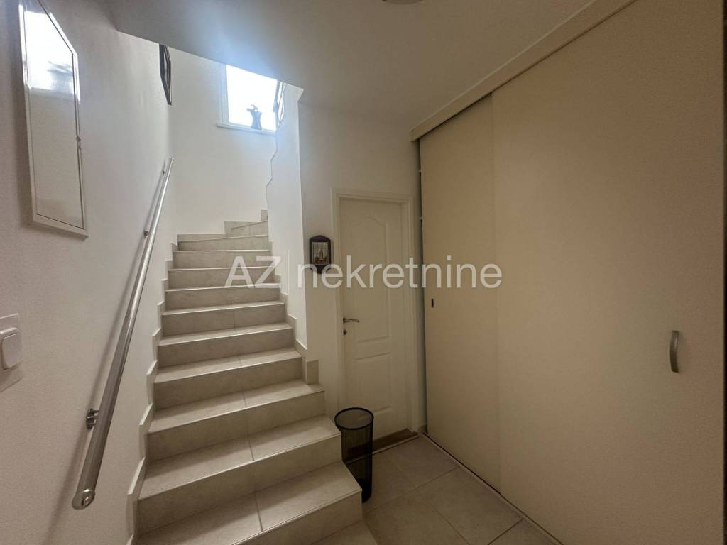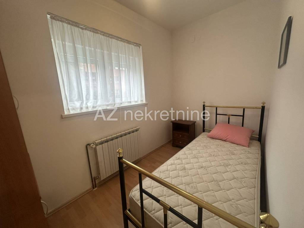 Na parceli od 454 m2, iznajmljuje se dvojna kuća sa prekrasnom okućnicom i garažom. Kuća se sastoji od podrumskog dijela u kojem se nalazi kupaonica i prostorija koja može poslužiti za teretanu, igraonicu ili praonicu rublja, dok se u visokom prizemlju nalazi ulazni prostor, kupaonica, jedna veća soba sa izlazom na dvorište i terasu, te manja spavaća soba. Na prvom katu nalazi se dnevni boravak sa blagovaonicom i kuhinjom, te toaletom. Dok se na drugom katu nalazi kupaonica i dvije spavaće sobe.