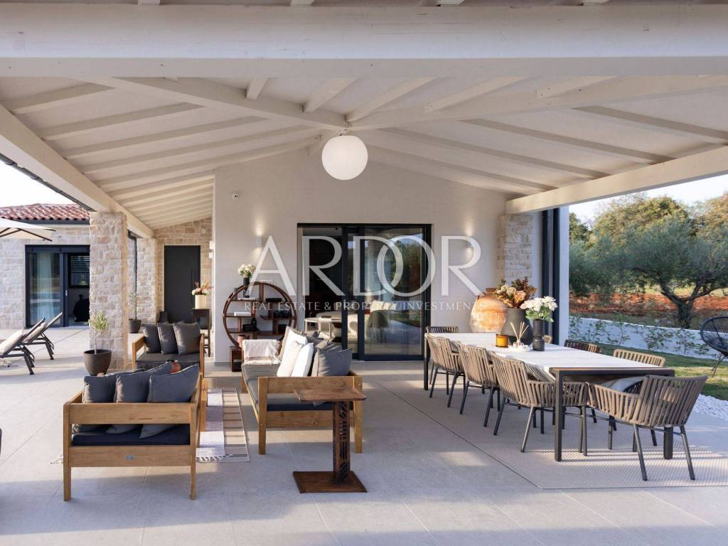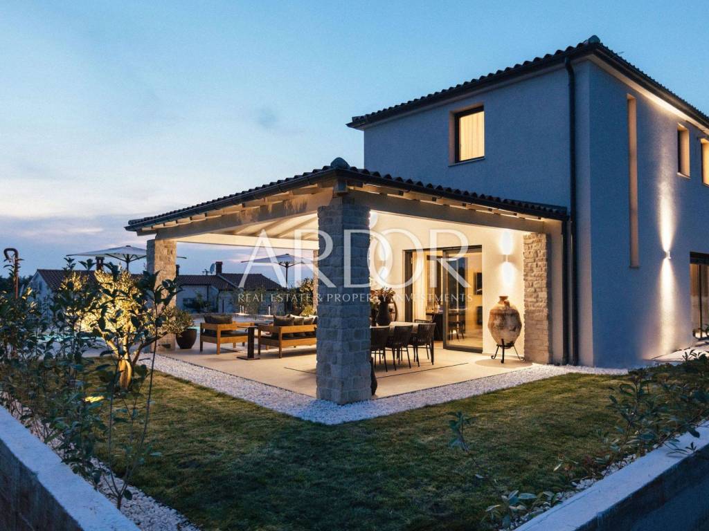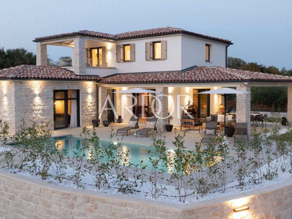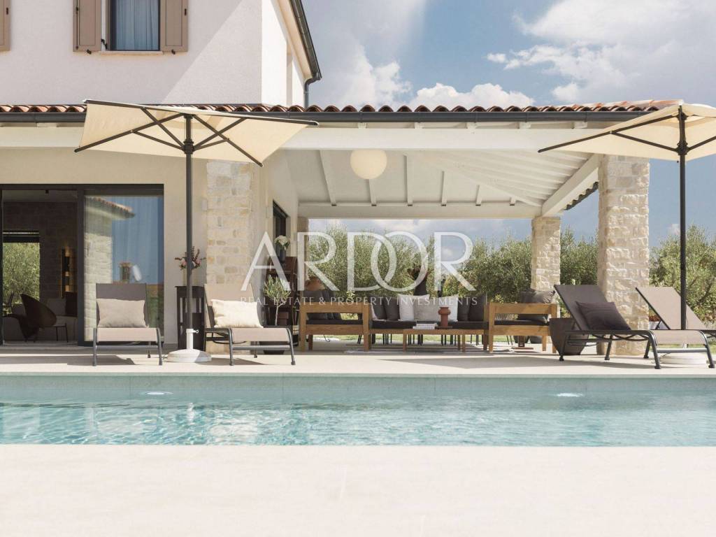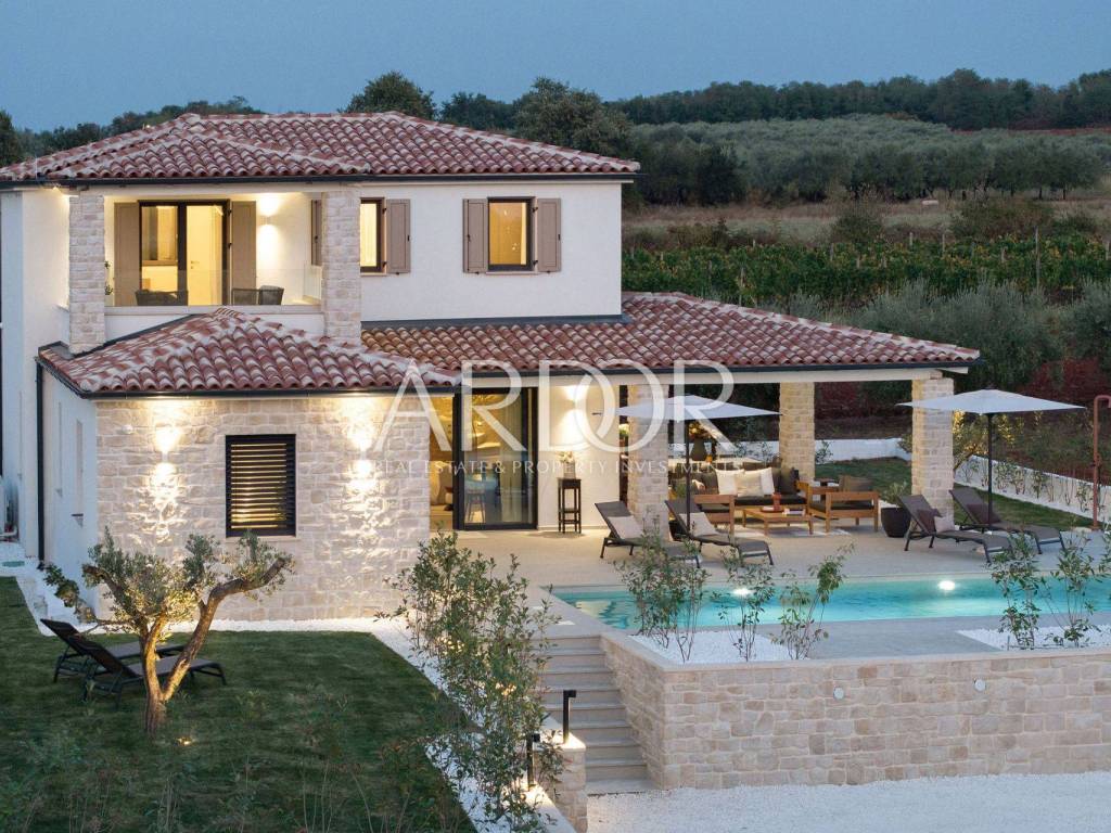 Poreč, novoizgrađena kamena vila s grijanim bazenom