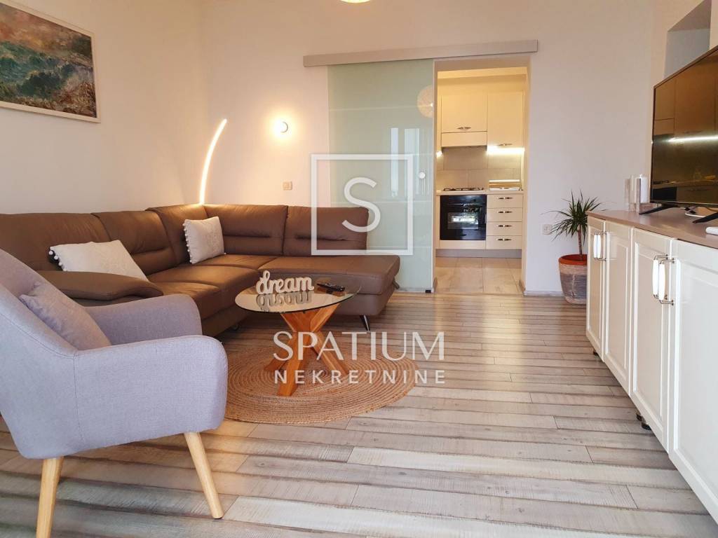 Nalazi se u neposrednoj blizini mora i ima predivan pogled na Kvarnerski zaljev te uređen vrt. Stanu pripada jedno parkirno mjesto.