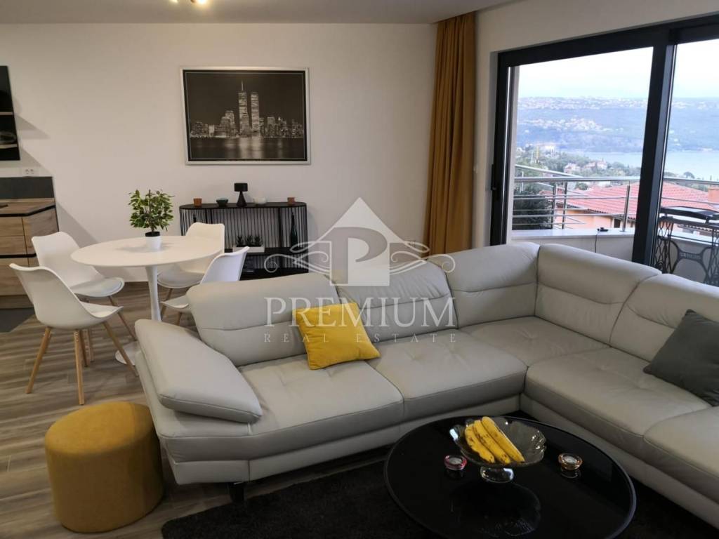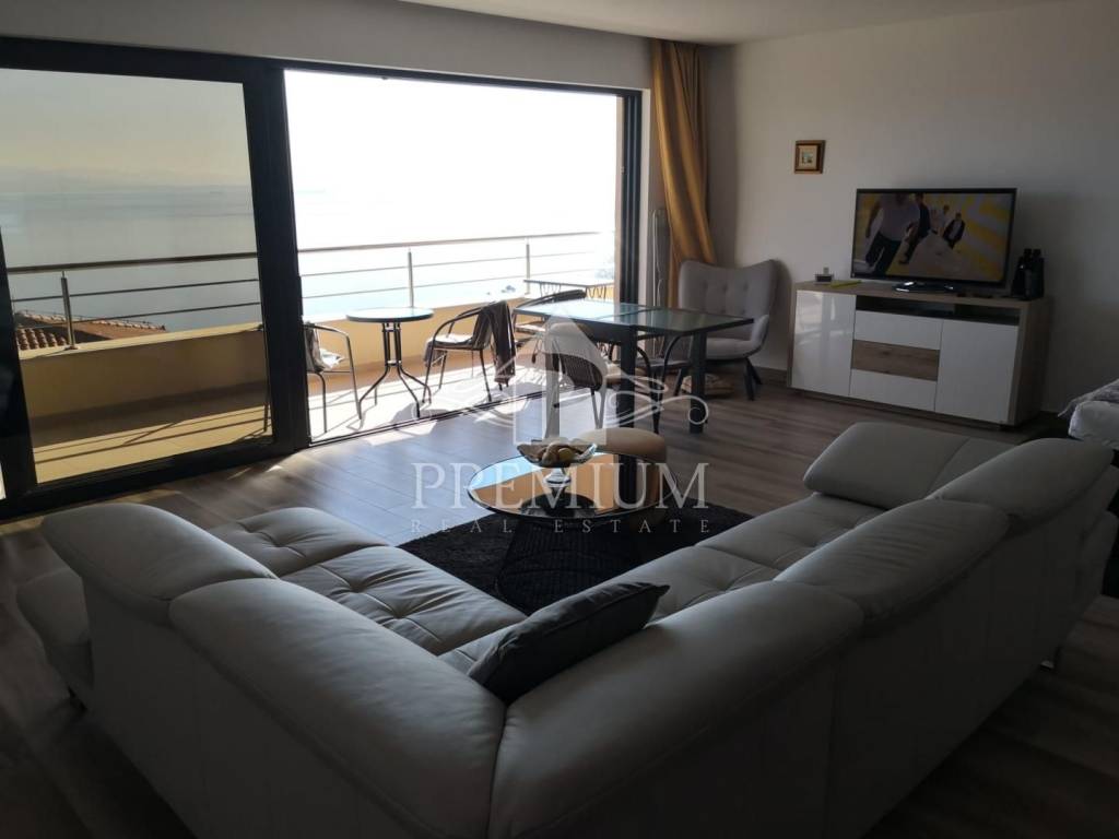 Stan se nalazi u modernoj novogradnji nedaleko centra Opatije, na blago povišenoj lokaciji s koje se pruža prekrasan pogled na grad i cijeli Kvarnerski zaljev...