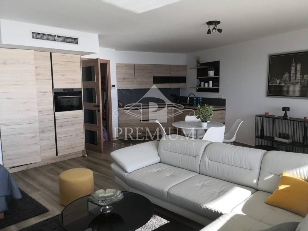Zgrada je izgrađena od vrhunskih materijala, stan je klimatiziran, a podno grijanje se nalazi u kupaoni. Stan ima parlafon, protuprovalna vrata te video nadzor.