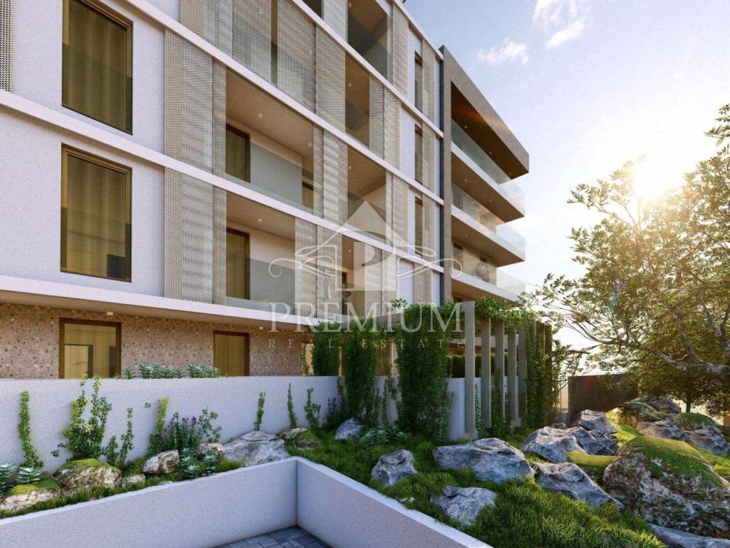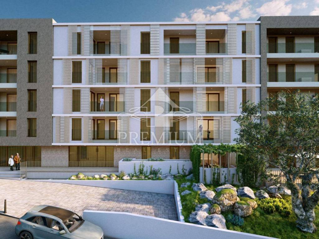 Atraktivna novogradnja na odličnoj poziciji! Zgrada sadrži 40 stanova i 4 poslovna prostora raspoređenih na 5 nadzemnih etaža. Parkiranje vozila i spremišta stanara nalaze se unutar 2 etaže podzemne garaže čime je umanjen vizualni utjecaj parkinga i omogućen je i što veći broj prohodnih ozelenjenih površina u prizemlju.