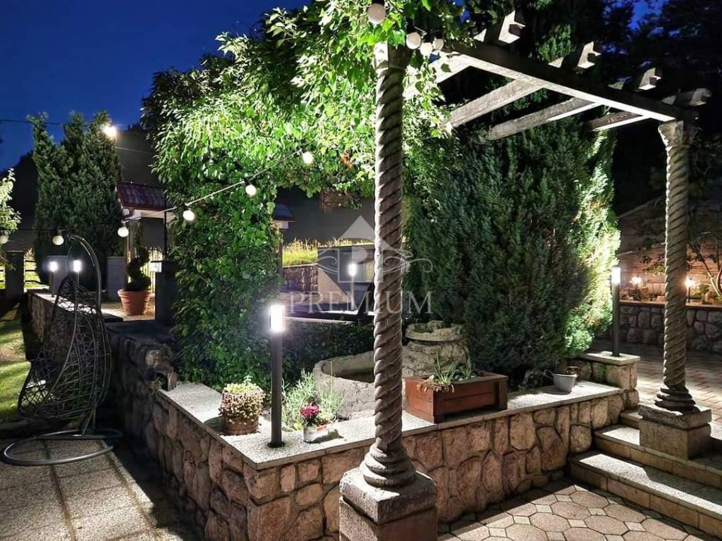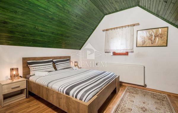 Sa zadovoljstvom Vam predstavljamo čarobnu kuću za odmor koja se smjestila u predivnoj, nedirnutoj oazi Gorskog kotara u blizini Ravne Gore. Kuća ima ukupnu stambenu površinu 218 m2 koju čine prizemlje, kat i potkrovlje. U prizemlju kuće se nalazi prostrani dnevni boravak s prekrasnim kaminom te kuhinja s blagovaonicom gdje ima dovoljno prostora za opuštanje i druženje s obitelji i prijateljima. Na katu se nalaze četiri spavaće sobe i dvije velike kupaone koje pružaju potpunu privatnost koja je potrebna za udoban boravak. Kuća osim boravka nudi i mnoge dodatne pogodnosti u prostranom dvorištu, kao što su manja kućica sa jacuzzijem, jog za boćanje, roštilj, ljetna kuhinja. U dvoristu, koje je popločeno, nalazi se i manja fontana. Uz glavnu kuću je već započela gradnja obiteljske kuće koja ima gotov planski projekt koji se može prilagoditi potrebama novog vlasnika.