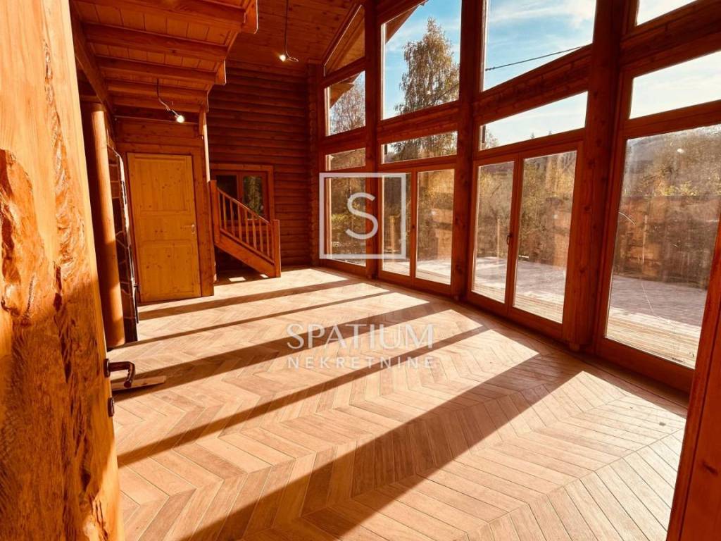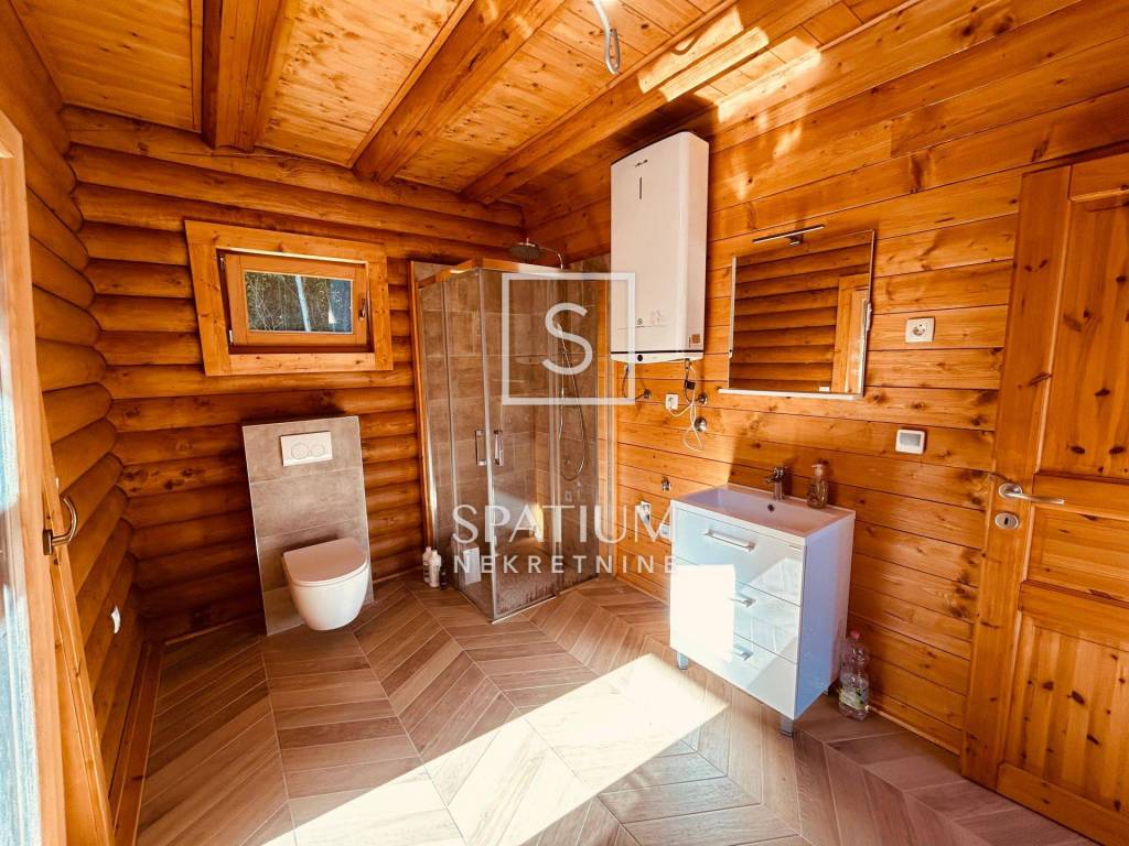 Kuća je sagrađena od strojno obrađenih trupaca na prekrasnoj lokaciji, između jezera Bajer i Lepenica.