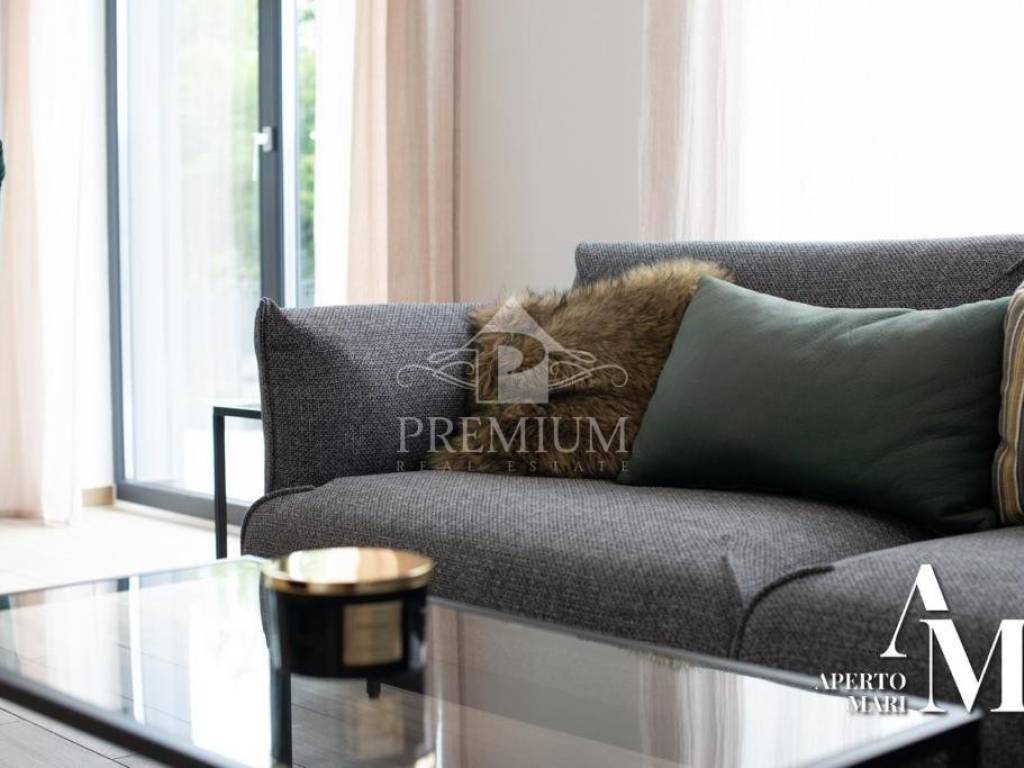 U prizemlju je smještena open space kuhinja s blagovaonicom i dnevnom sobom, ostava te gostinjski toalet. Na istoj etaži je i mini wellness zona sa saunom, velikom hidromasažnom kadom i zonom za opuštanje. iz dnevnog boravka postoji izlaz na vanjsku terasu i dvorište sa mjestom za roštilj.