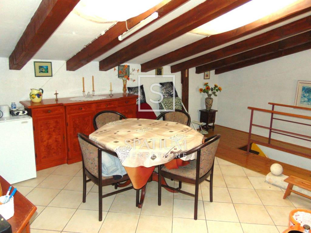 Kat je sačinjen od hodnika, prostrane spavaće sobe, kupaonice te još jedne sobe s kuhinjom dok u visokom potkrovlju nalazimo hodnik, dnevni boravak, spavaću sobu, kupaonica, kuhinju s ognjištem (za roštilj) i malu ostavu.