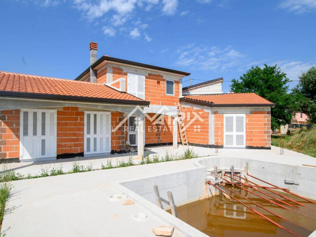 Prodaje se kuća sa bazenom ukupne površine 170 m2, smještena na odličnoj lokaciji s otvorenim pogledom na prirodu i maslenike. Lokacija je izuzetno povoljna jer su veliki gradovi poput Umaga, Portoroža i Kopra udaljeni samo 15-ak minuta vožnje, a do prvih plaža je samo 9 km.
