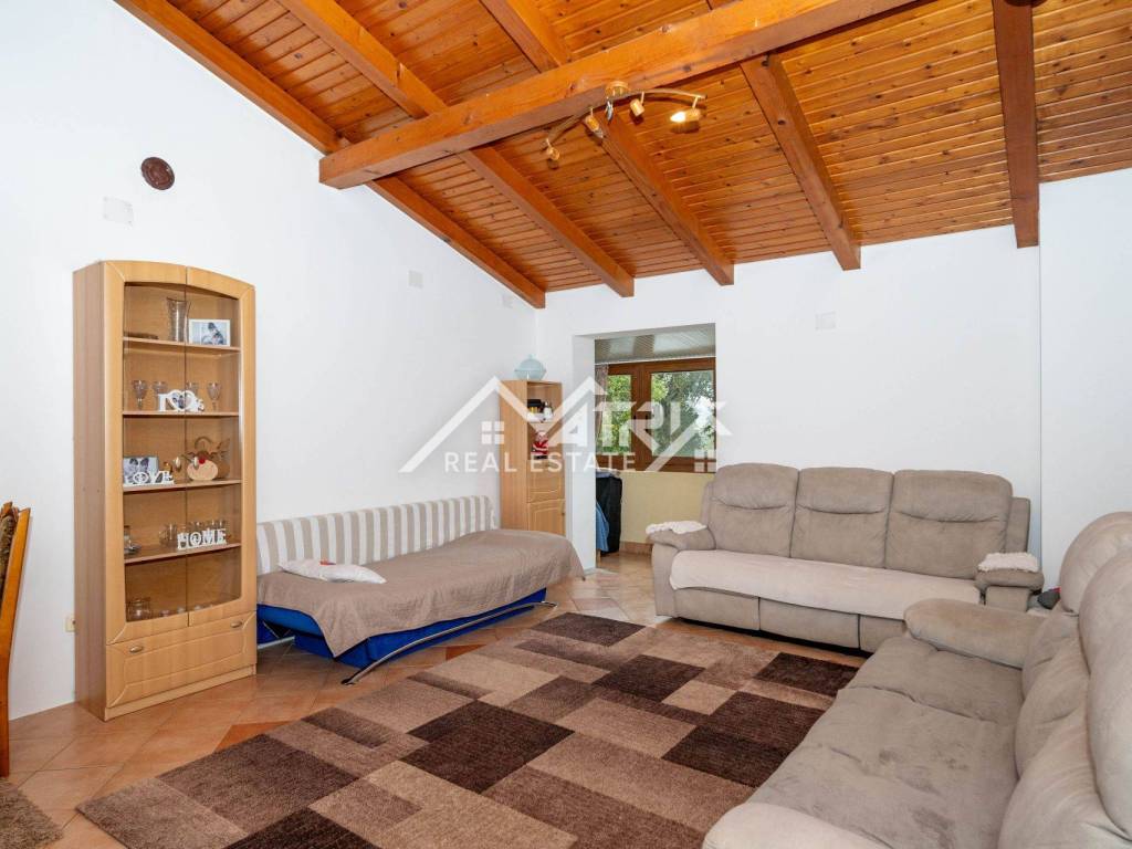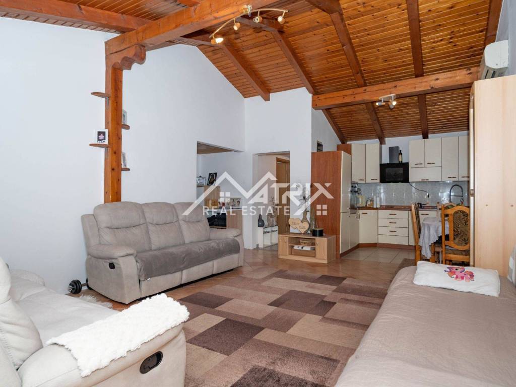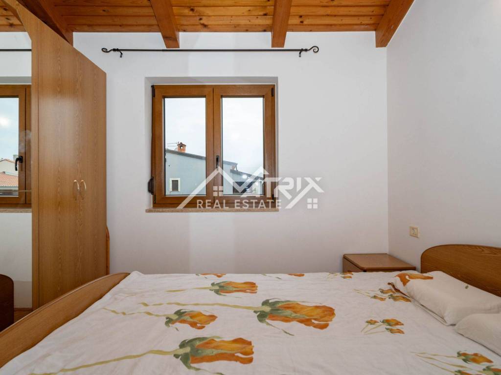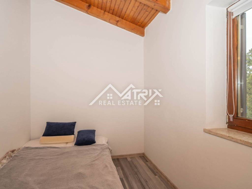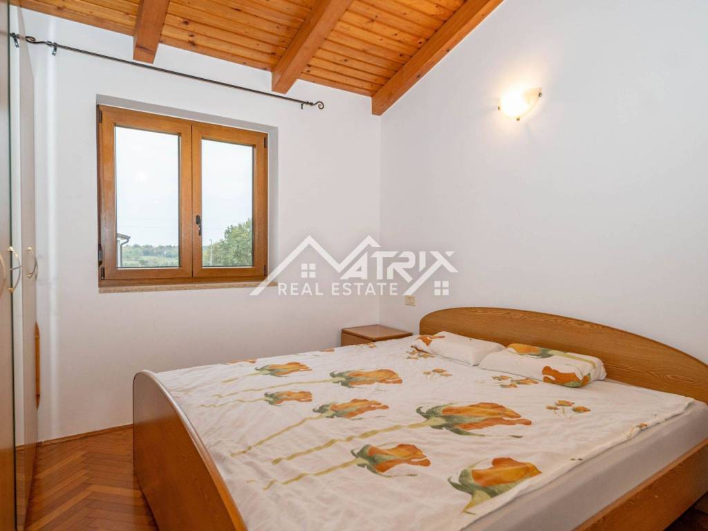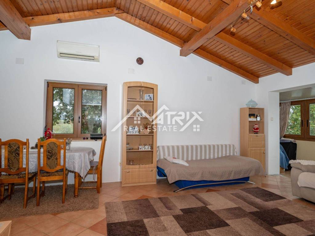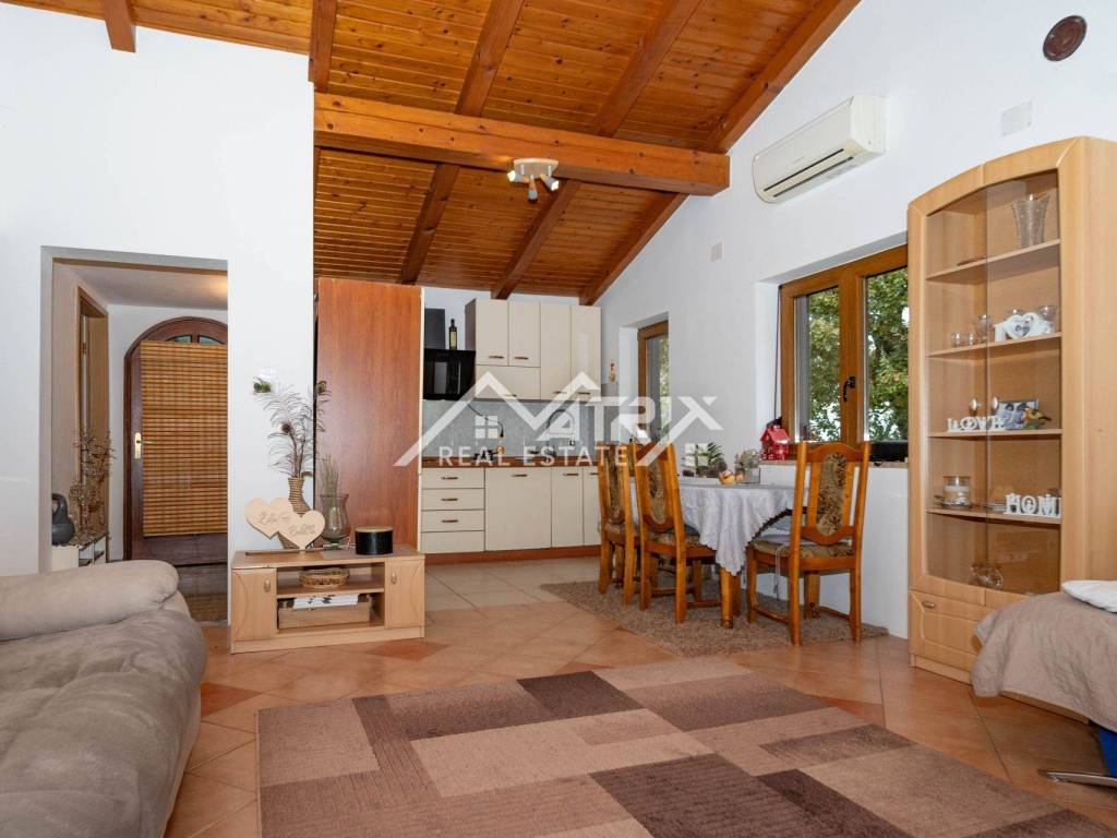 Stan se grije i hladi na klima uređaj, isto tako ima sve potrebne instalacije za peć na drva ili pelet. Ispred ulaza nalazi se lijepi balkon s pogledom na prirodu, a ispod stepeništa nalazi se spremište od nekoliko metara kvadratnih. Stanu pripada i vrtna kućica u koju je moguće spremiti dva mopeda. U sklopu imamo i parking mjesto. Lokacija je izrazito mirna, a opet dovoljno blizu svih sadržaja I mora.