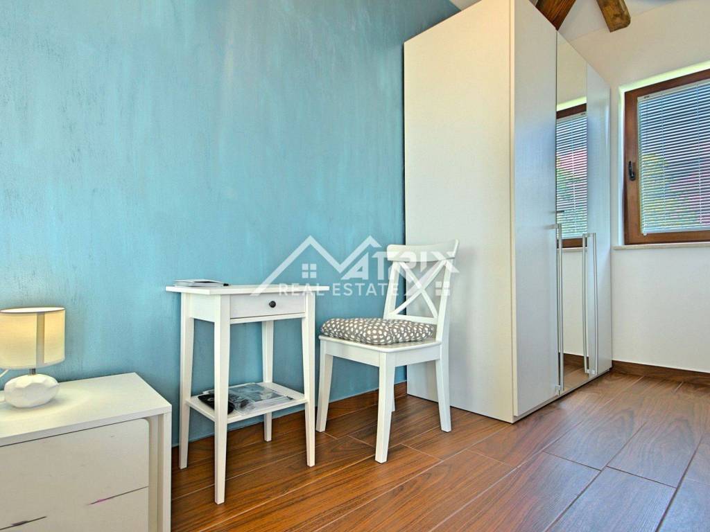 Prostrani dnevni boravak u prizemlju očarava otvorenim konceptom s modernom kuhinjom i udobnom blagovaonicom, stvarajući savršen prostor za druženje. Dvije spavaće sobe na istom katu nude privatnost i udobnost, svaka s vlastitom kupaonicom. Na katu se nalazi još jedna spavaća soba s kupaonicom, jacuzziem, garderobom te terasom s prekrasnim pogledom.