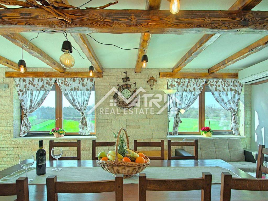 Oduševite se sofisticiranim ugođajem ove predivne vile, smještene svega 8 km od obale mora i slikovitog Novigrada. S prostranom okućnicom od 558 m2, ova nekretnina pruža privatnost uz bajkovit pogled na okoliš.