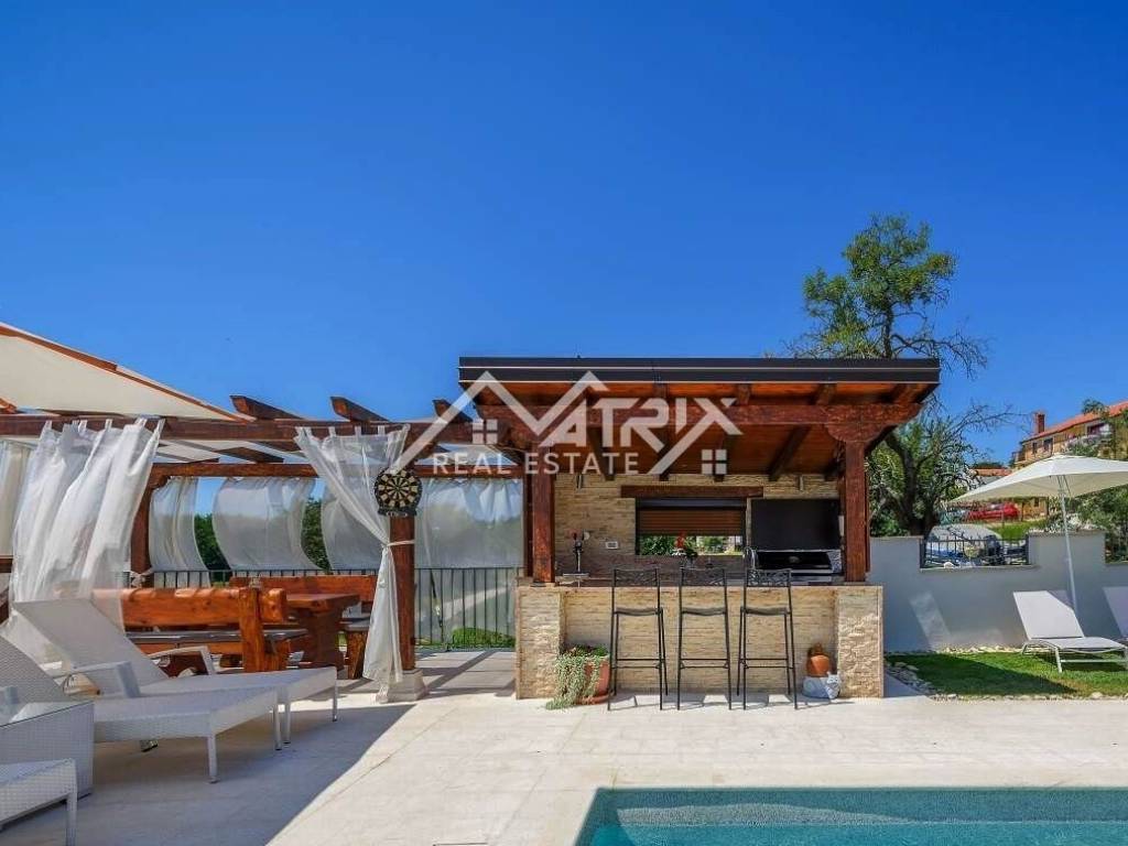 Uživajte u vanjskom raju s prekrasnim bazenom, vanjskom kuhinjom i roštiljem te dječjim kutkom. Osim toga, konoba na samoj okućnici nudi potpuno opremljen prostor s kuhinjom, blagovaonicom, spavaćom sobom i kupaonicom - idealno za goste ili obiteljska okupljanja.