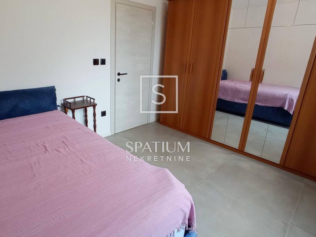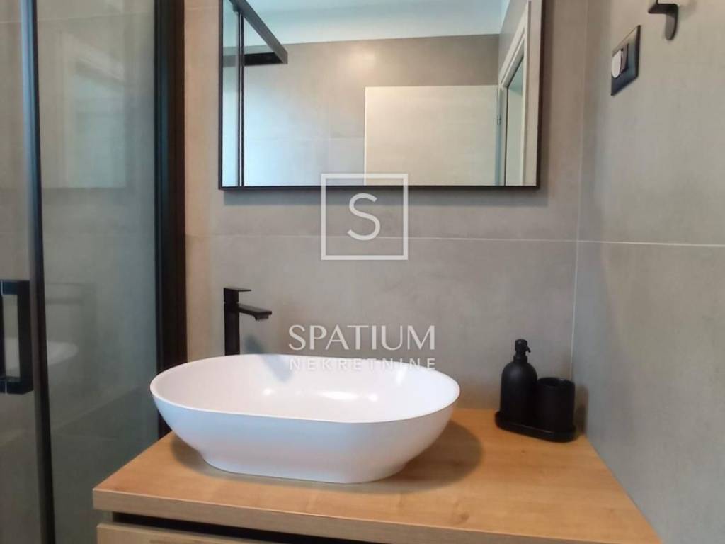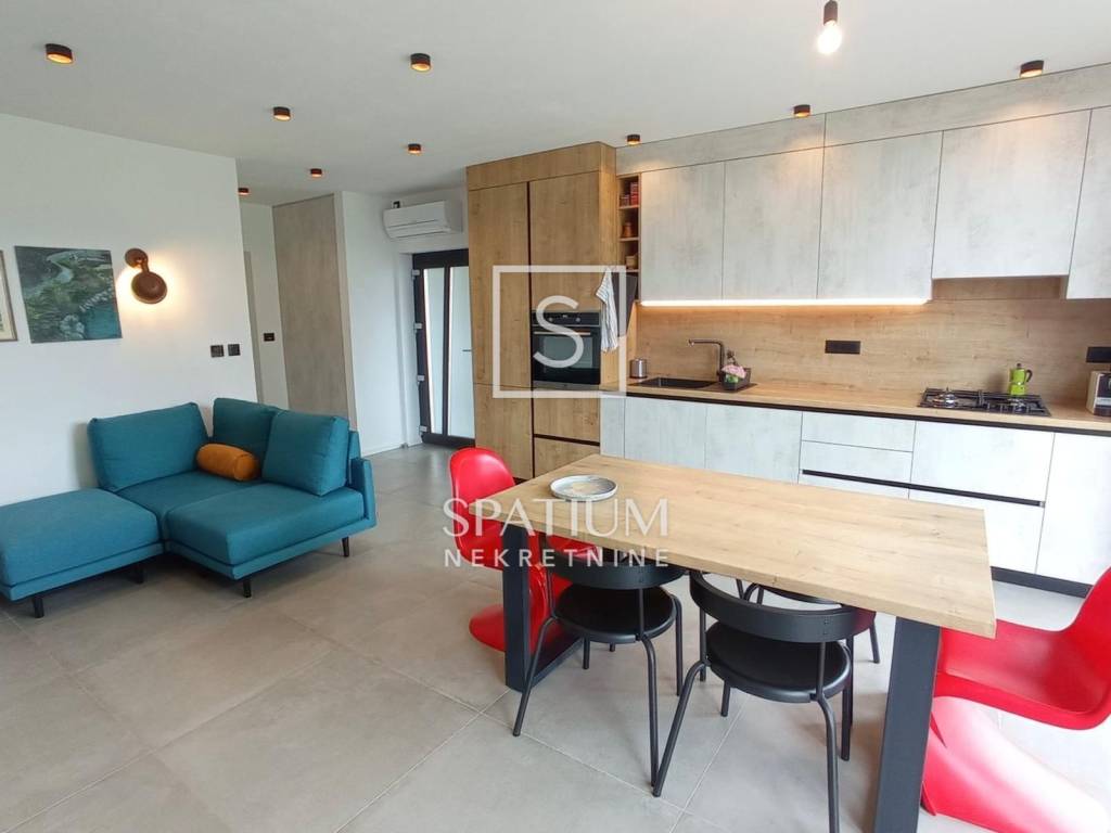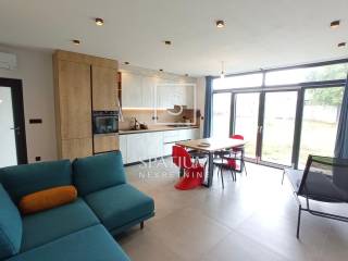 Terasa je djelomično natkrivena, a na ostatak postavljena aluminijska pergola. Kuhinja je postavljena u jednom stanu. Troslojna PVC stolarija s komarnicima, demit fasada od 10 cm, podovi su obloženi talijanskom keramikom, sanitarije su Hansgrohe te kupaonski, kuhinjski kao i ugradbeni ormari u hodnicima rađeni su po mjeri.