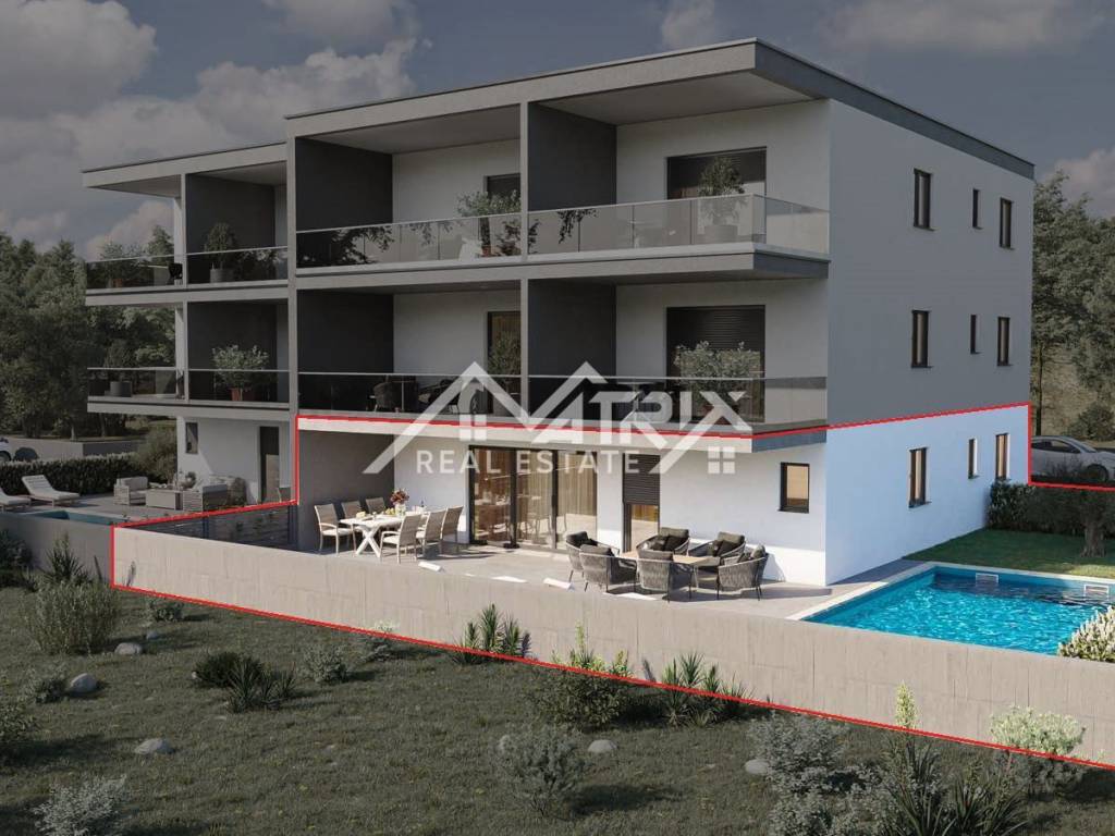 Novigrad, stan u prizemlju sa bazenom. Novogradnja!