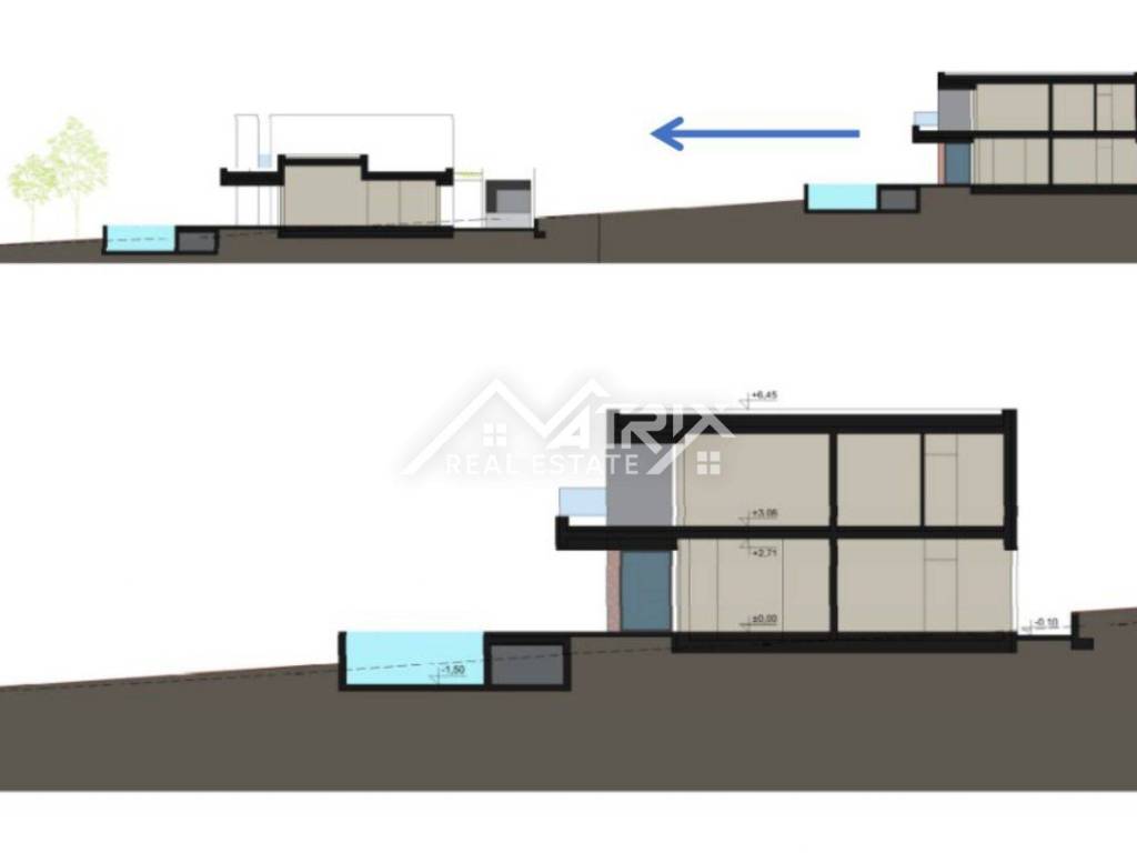Prodaje se ovo prekrasno građevinsko zemljište ukupne površine 1402 m2 smješteno na izoliranoj lokaciji na rubu građevinske zone što garantira prekrasan pogled na more i pejzaž sa svakog mjesta na zemljištu. Zemljište ima aktivnu građevinsku dozvolu za izgradnju moderne vile s bazenom površine 250 m2. Nekretnina izgrađena na ovom zemljištu imat će zaista jedinstven pogled.