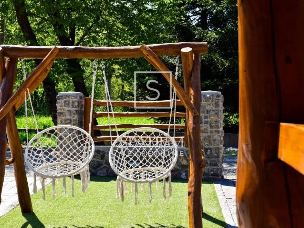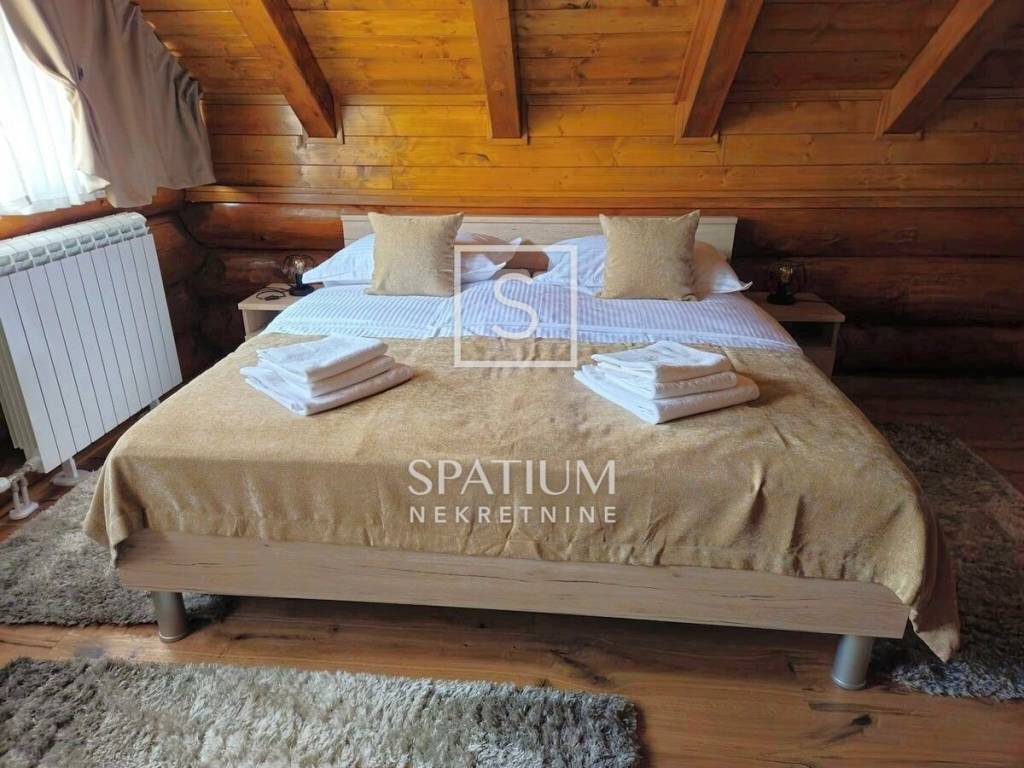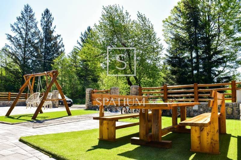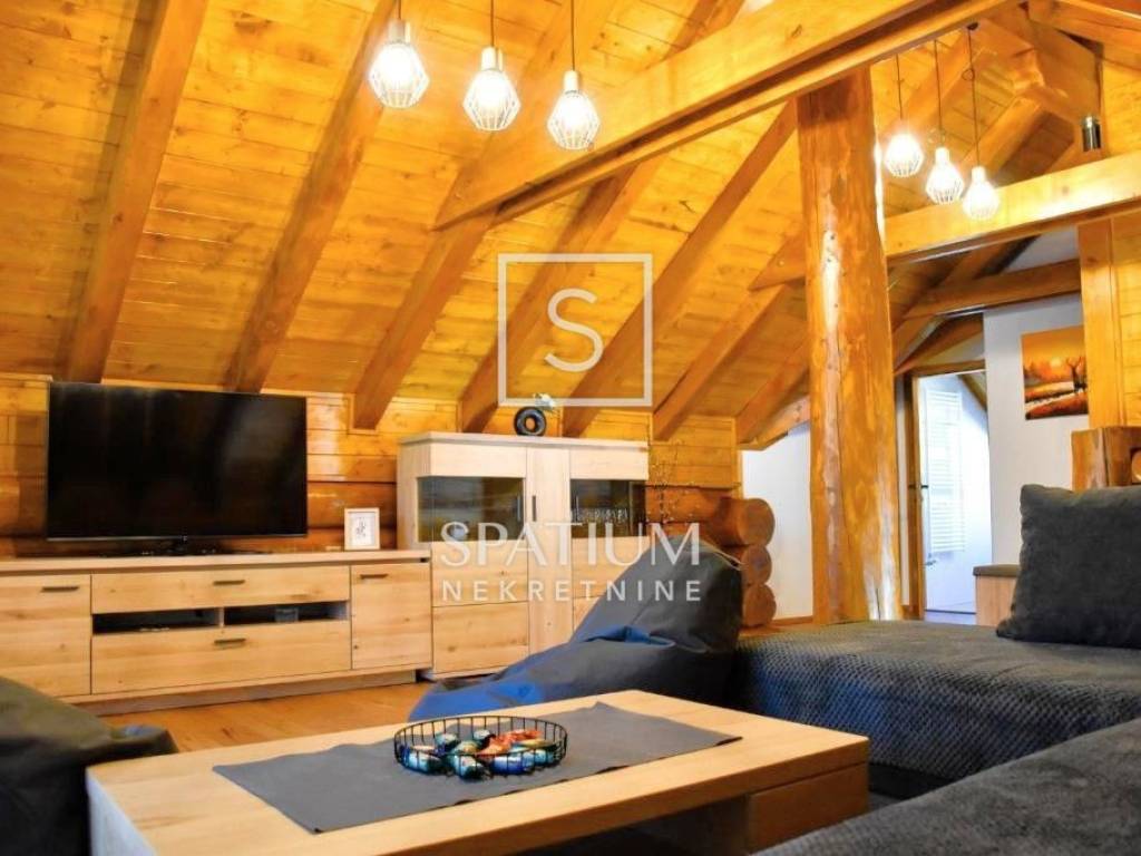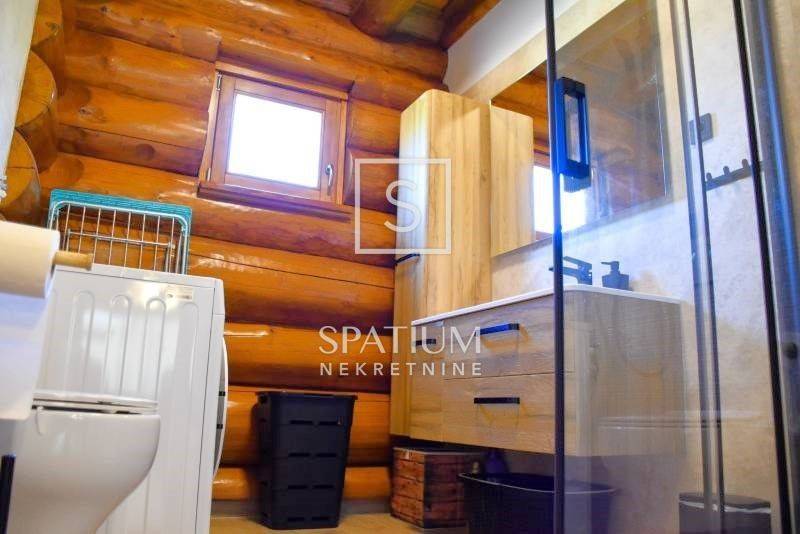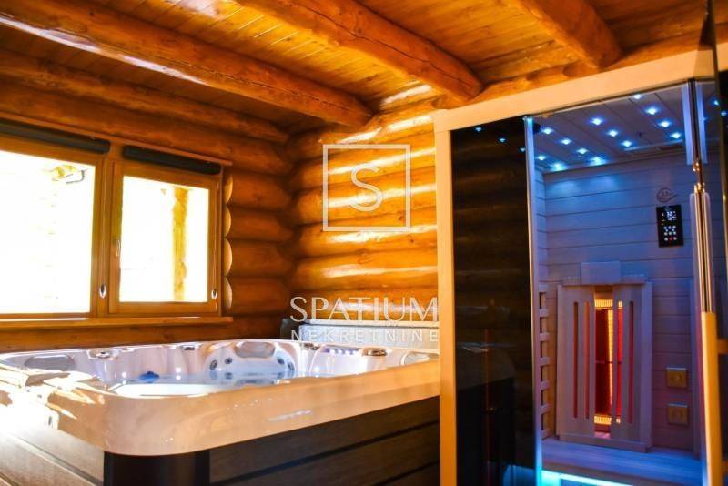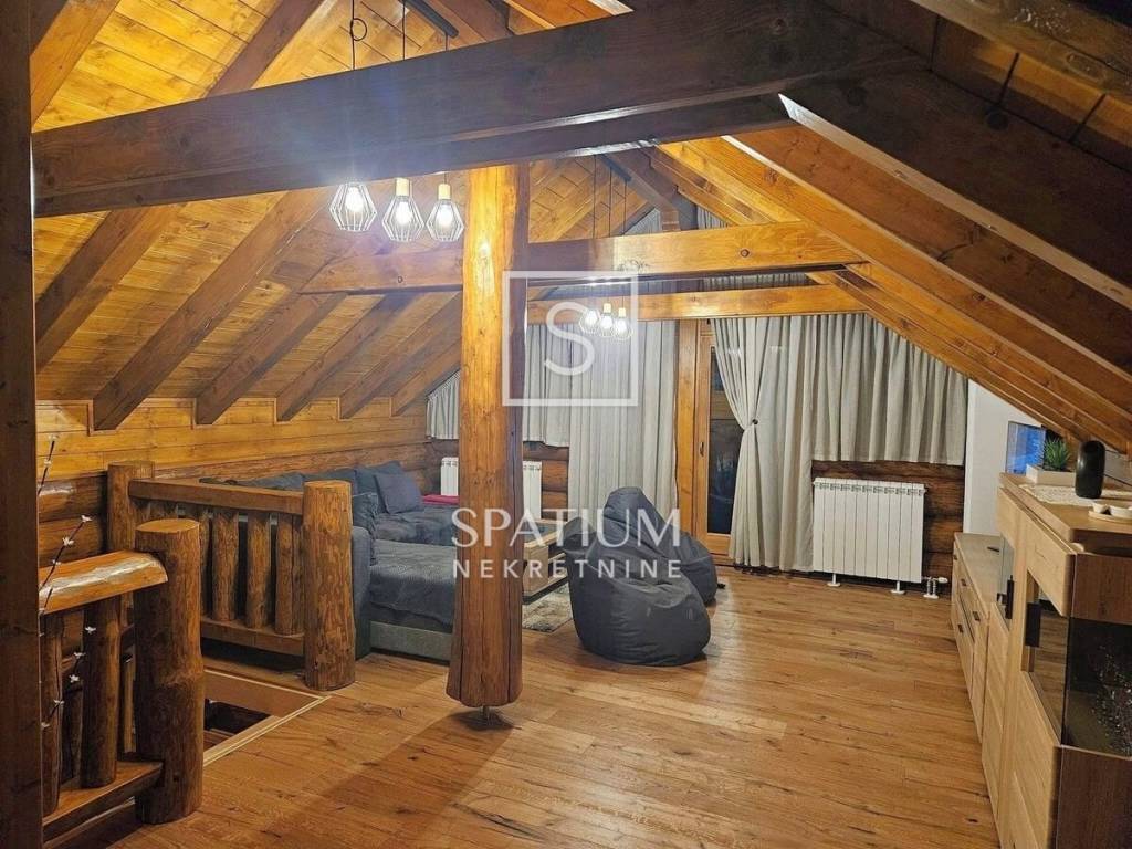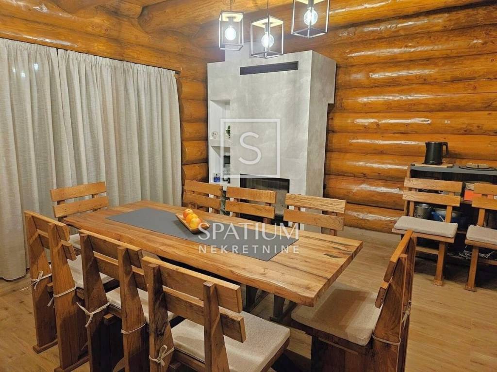 FUŽINE, u ponudu smo dobili autohtonu drvenu kuću površine 127 m2 na lijepoj okućni od 489 m2. Sastoji se od dva kata, u prizemlju se nalaze kuhinja s blagovaonicom, spavaća soba, kupaonica te wellness s jacuzzijem i saunom. Unutarnje stepenište vodi na kat, gdje su dnevni boravak, dvije spavaće sobe i kupaonica. Provedeno je podno grijanje s dizalicom topline, a moguće je i grijanje na drva. Obje etaže imaju izlaz na natkrivene terase, pogleda na park i prirodu. Na samoj parceli nalaze se sjenica i roštilj te četiri parkirna mjesta. Objekt je odlična prilika kako za cjelogodišnji odmor, ujedno i za bavljenje turističkom djelatnošću.