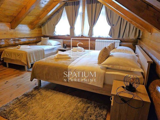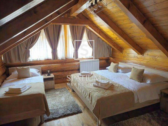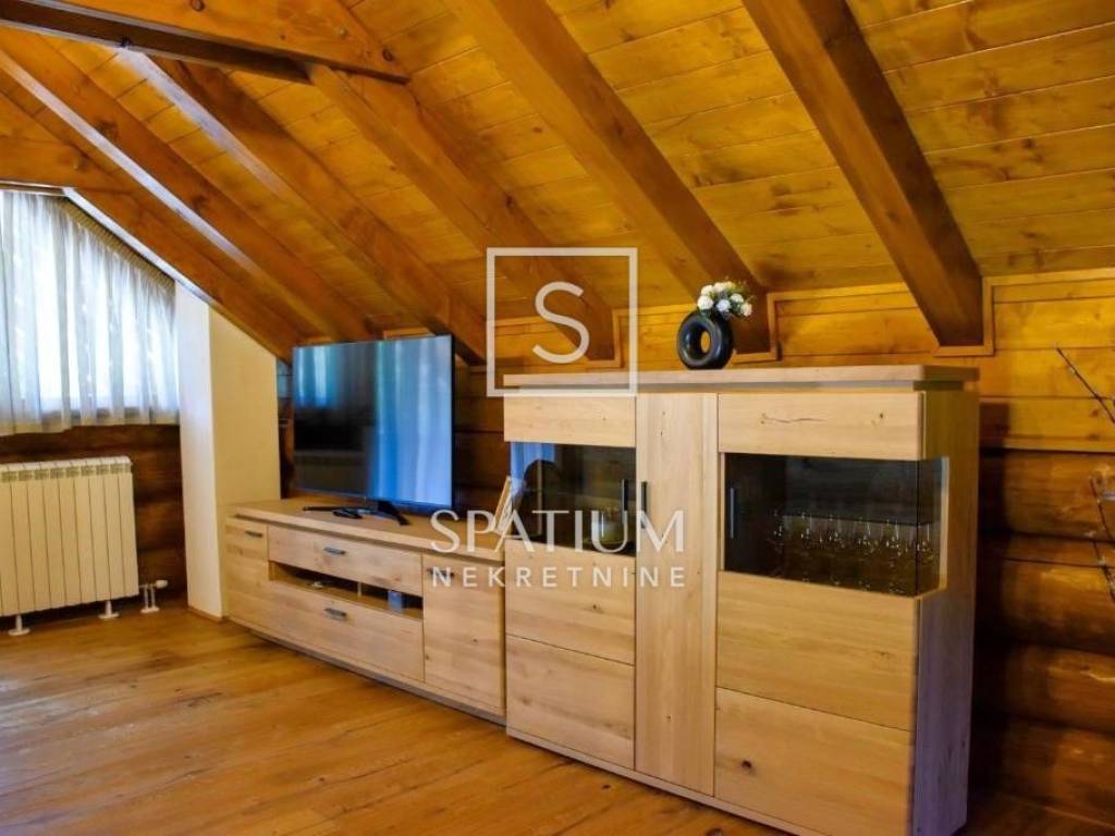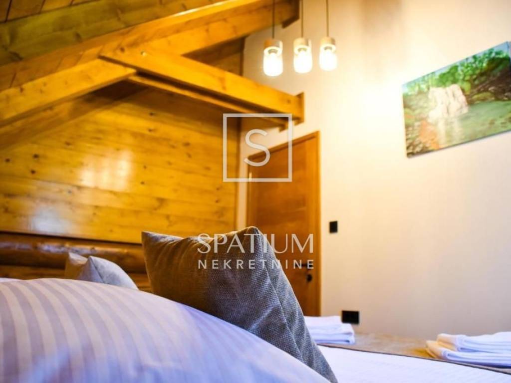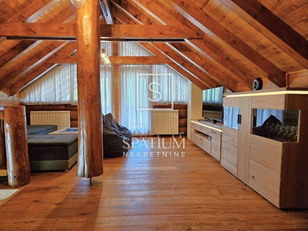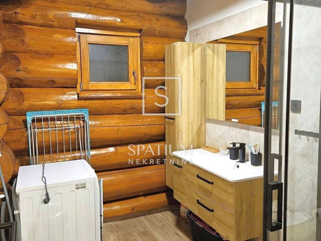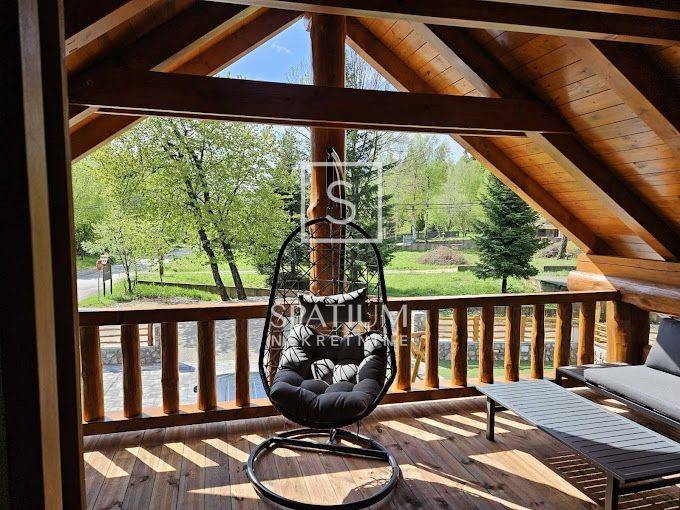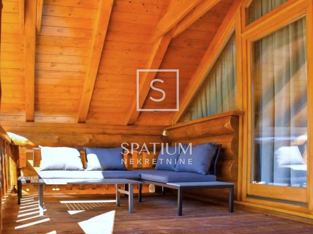 FUŽINE, u ponudu smo dobili autohtonu drvenu kuću površine 127 m2 na lijepoj okućni od 489 m2. Sastoji se od dva kata, u prizemlju se nalaze kuhinja s blagovaonicom, spavaća soba, kupaonica te wellness s jacuzzijem i saunom. Unutarnje stepenište vodi na kat, gdje su dnevni boravak, dvije spavaće sobe i kupaonica. Provedeno je podno grijanje s dizalicom topline, a moguće je i grijanje na drva. Obje etaže imaju izlaz na natkrivene terase, pogleda na park i prirodu. Na samoj parceli nalaze se sjenica i roštilj te četiri parkirna mjesta. Objekt je odlična prilika kako za cjelogodišnji odmor, ujedno i za bavljenje turističkom djelatnošću.