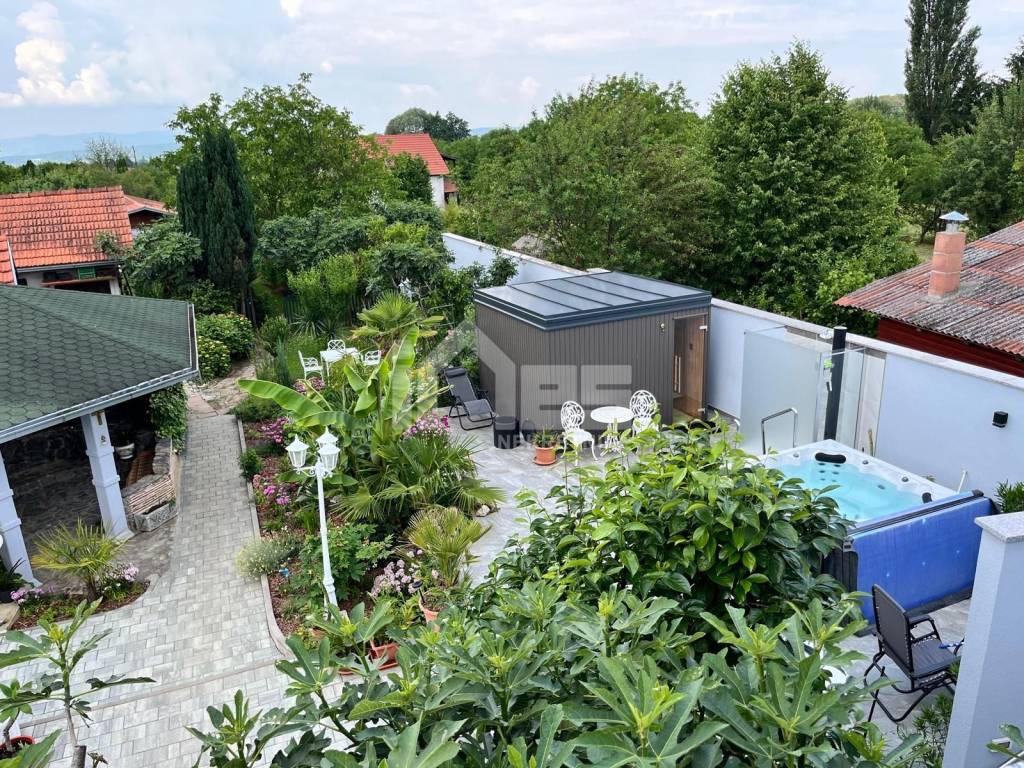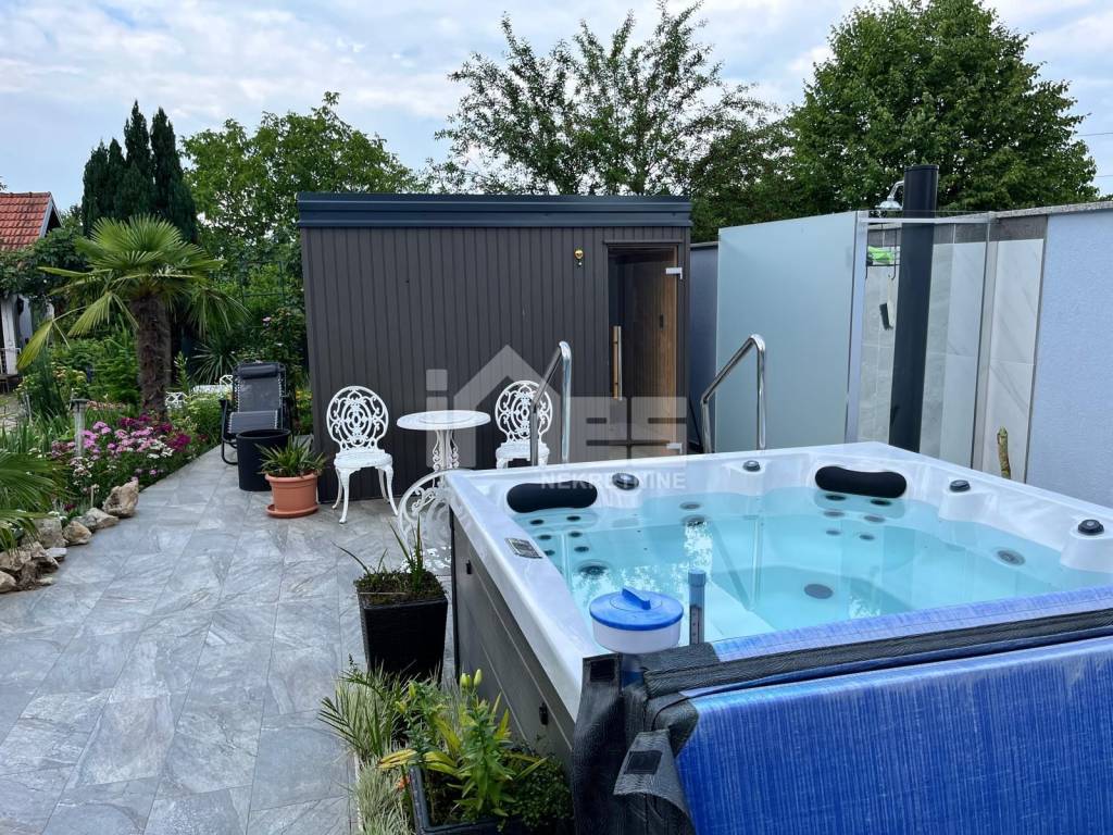 U dvorištu se nalaze 2 gospodarska objekta površine 92 m2 i 20,76 m2, grijani bazen, jacuzzi, vanjski tuš, sauna, ribnjak, vrt i voćnjak.