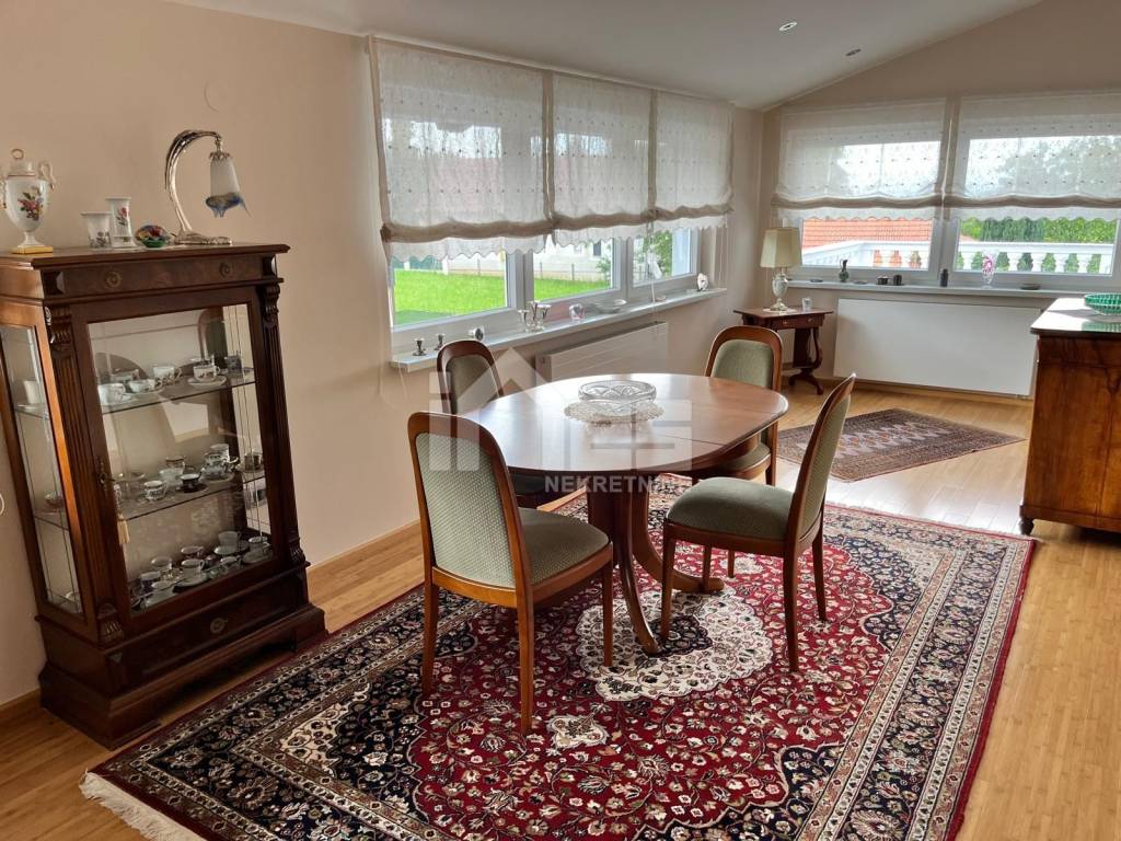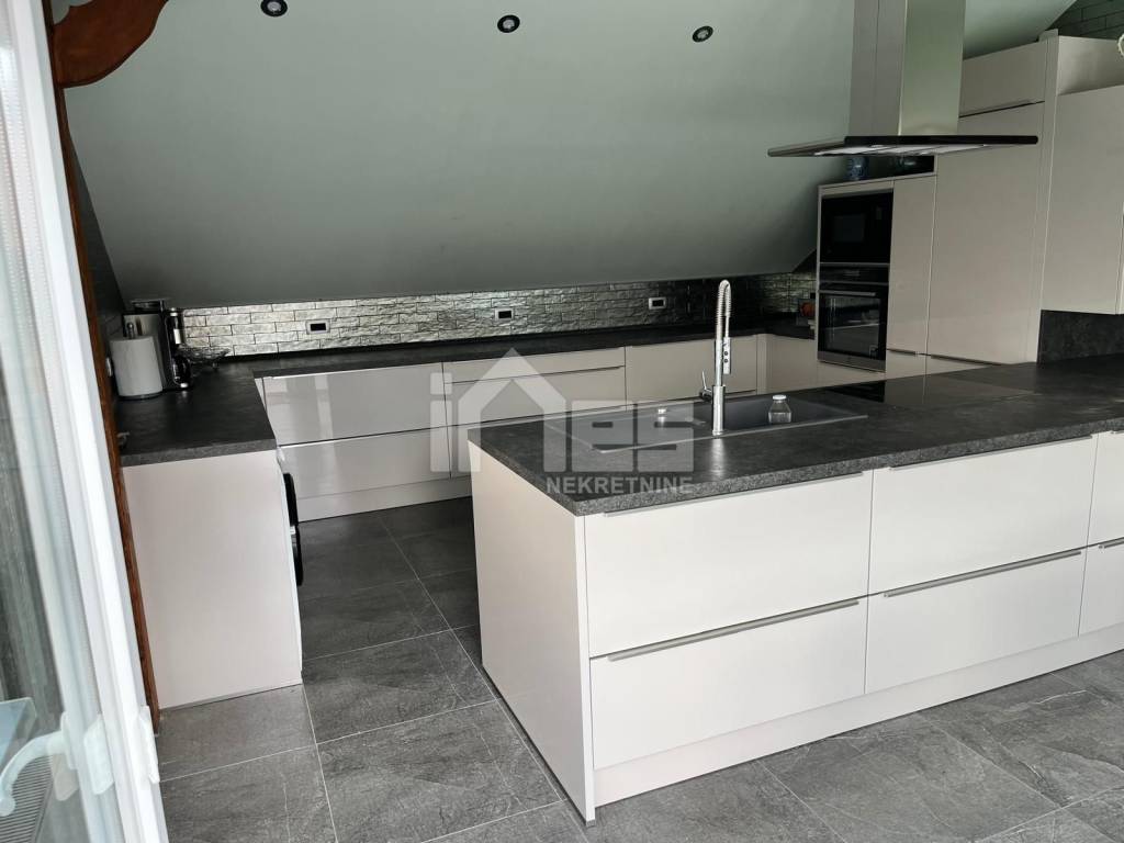 Kuća, bruto površine 576,26 m2, sastoji se od prizemlja, 1. kata i potkrovlja, a unutar kuće se nalaze 3 zasebna, odvojena stana i u visokom potkrovlju nalazi se gostinski apartman. Namještena je te je odmah useljiva.