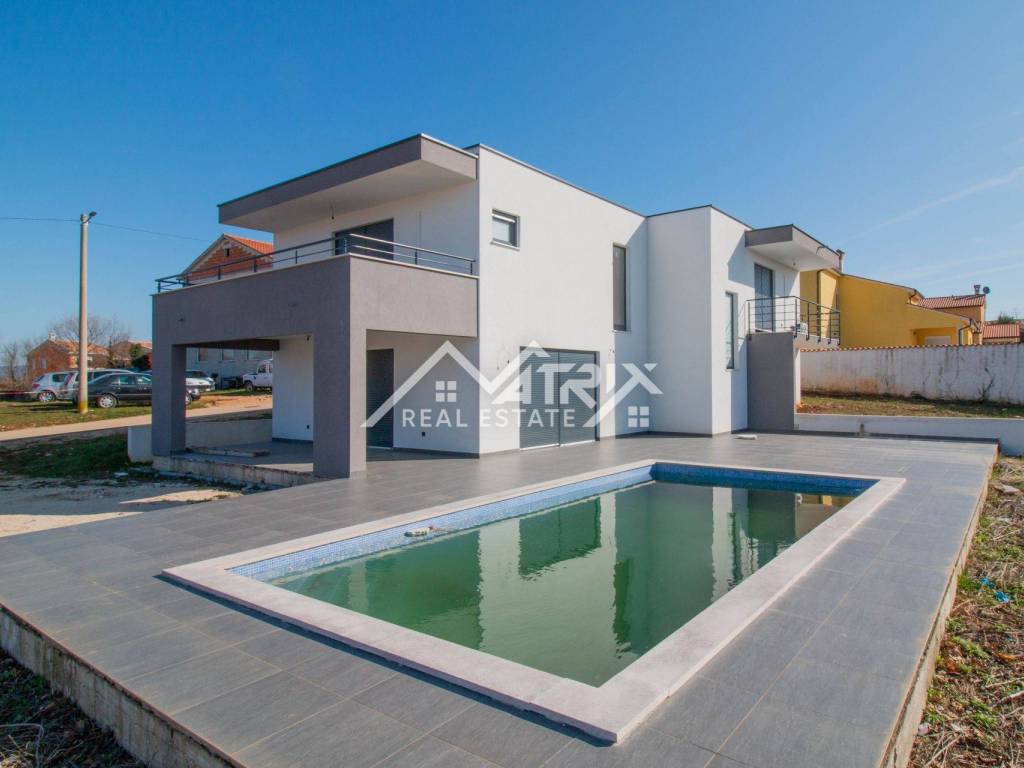 Kuća se prostire kroz prizemlje i prvi kat. U prizemlju se nalazi prostrani open space prostor obuhvaća kuhinju, blagovaonicu i dnevni boravak, koji ima direktan pristup velikoj terasi bazena sa sunčalištem, savršenoj za opuštanje i uživanje u suncu i toplini. U prizemlju se još nalaze wc i dodatna ostava. Na katu se nalaze tri spavaće sobe s vlastitim kupaonicama, te jedna dodatna soba koja je predviđena kao ured.