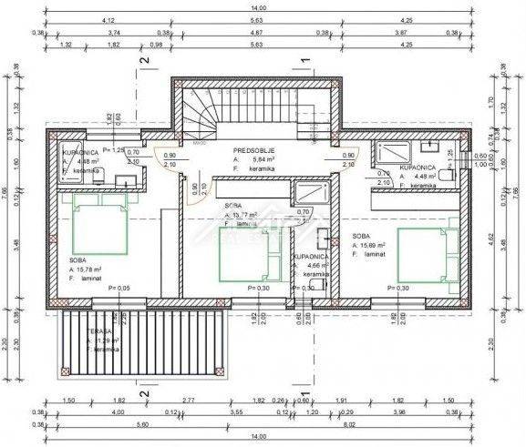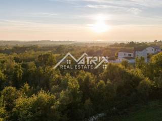 Prodaje se ova moderna kuća s bazenom ukupne neto stambene površine 149 m2, smještena u mirnom naselju udaljenom 17 km od mora i centra Poreča. Najbliža trgovina udaljena je 3,5 km. Kuća se nalazi na samom rubu građevinske zone, a s kata kuće prostire se otvoreni pogled na more i zelenilo.